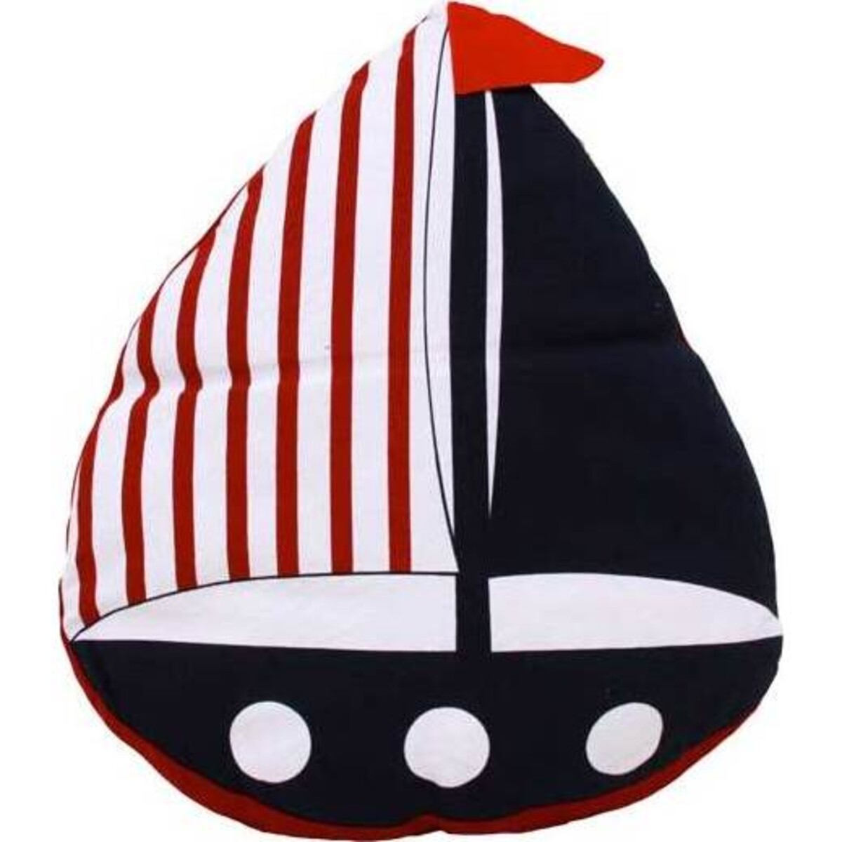 Cushion Sail Boat is a cushion made using Calico material with measurements of 40x45x5 cm. It has a maroon stripe at the bottom, mix of navy blue and white on the boat itself. The sail features upward stripes of maroon and white on one side and navy on the other. A red triangle is hemmed in where the two sails converge at the helm, offering the reflection of a flag. This special kind of cushion is a great present for any home. Whatever the use, whether creating an attractive balcony or enhancing living room space buyers can expect this upholstery ware to blend in with convenience.