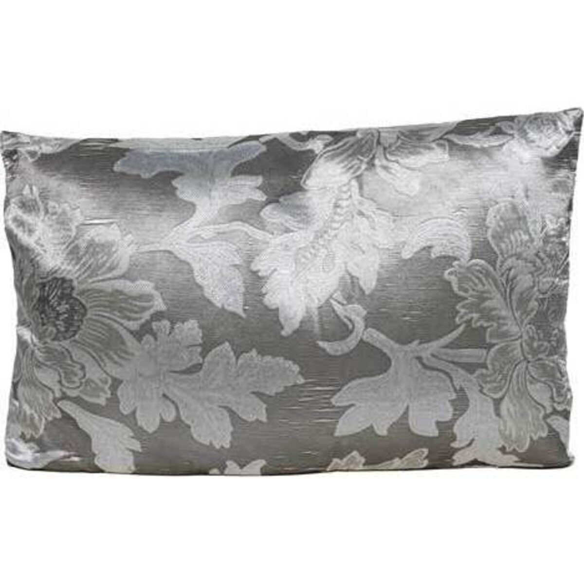 These fabulous throw pillows are horizontal in shape and feature a dark silver background with a light silver floral design on the front and back. Their metallic sheen reflects the light beautifully, not only making them more charming, but also a little more interesting. While their look is more than enough reason to make them your own, they're squishy and comfortable to curl up with at the end of the day. They're wonderful to use in your living room as well as in your bedroom for a romantic and stylish touch.