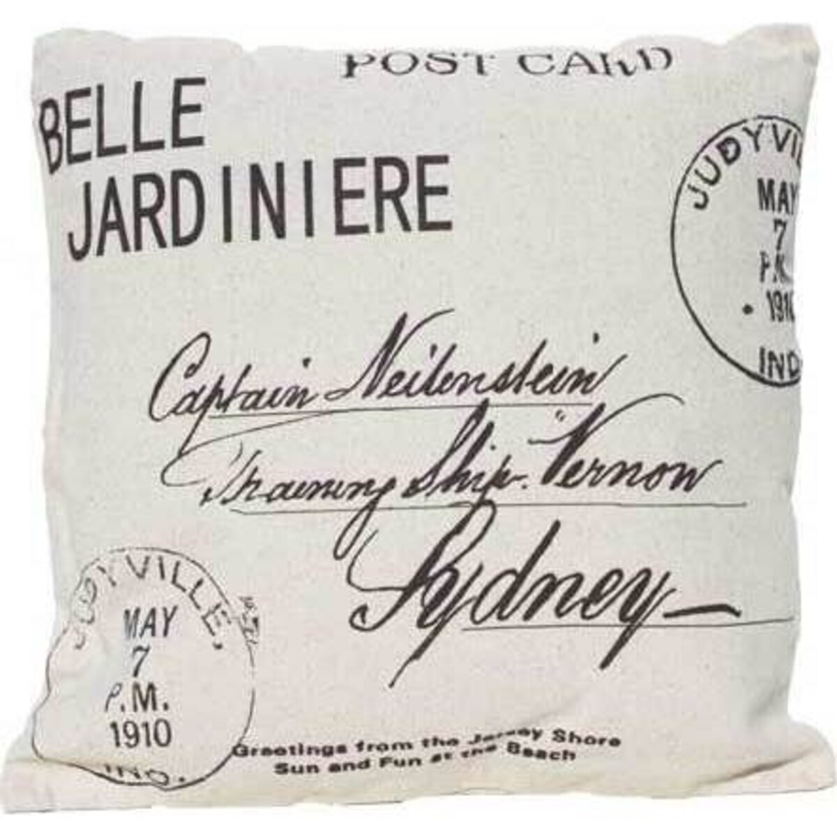 Each of these white cushions features the image of an oversized postcard written in elegant black script. The top states "Post Card" with "Belle Jardiniere" in print underneath. The recipient's address is written in elegant script calligraphy as two 1910 stamped postmarks sit in either corner. Thanks to their fabulous design and black-and-white palette, these cushions will complement any style of d_cor and colour scheme you have in your home. While their appearance makes them desirable enough, they're so comfortable and squishy you'll want to cuddle up with them on a daily basis.