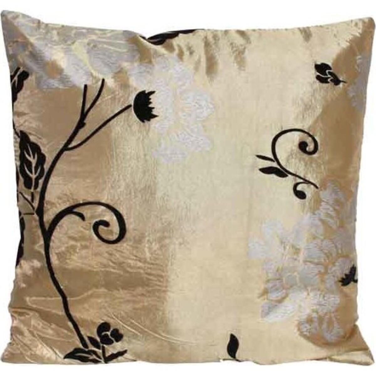 The beautiful golden surface of this cushion is then beautifully decorated with patterns of black vines that come with leaves and flowers. Along with the black patterns, there is also a floral pattern that comes in silvery white tone. The combination of silver white, deep black, and shiny gold creates a beautiful union of colours.