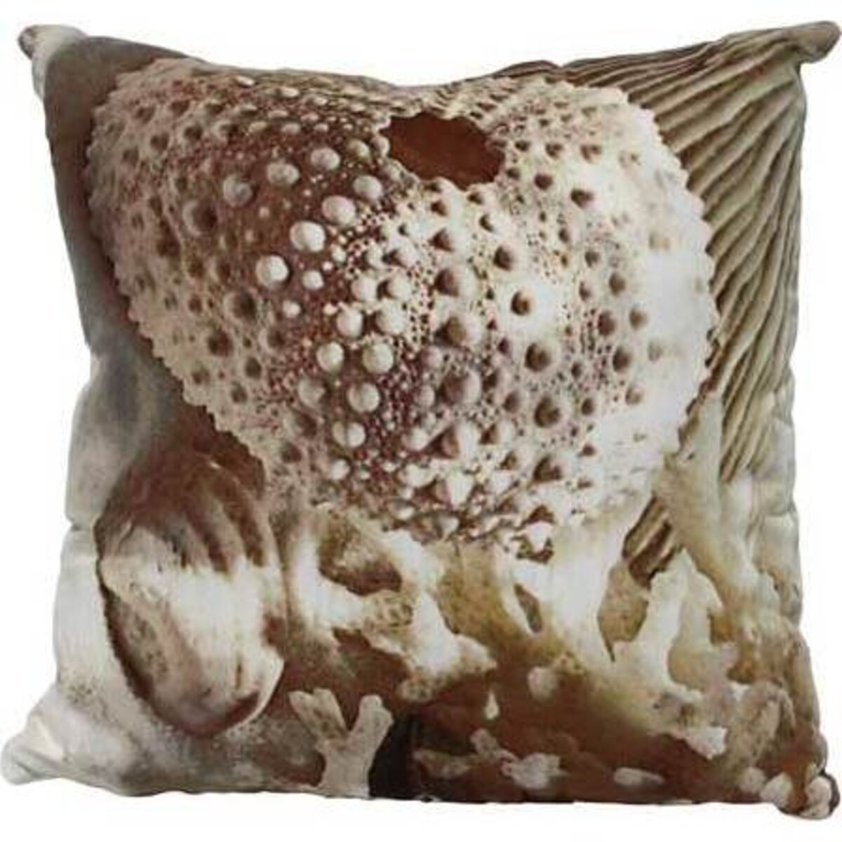 Made for the beach house, or at least a beach themed room in the city, this earth - toned decorative pillow is definitely a showpiece. Created from multiple shades of brown and green, this “bottom of the ocean” themed pillow features several sea plants and even a large sea urchin. The most unique part of this pillow is that the graphics on it are perfectly textured. It's almost as if this were a photograph placed onto a pillow. The sunlight coming in from the right hits the elements beautifully and the texture of each picture is on point.