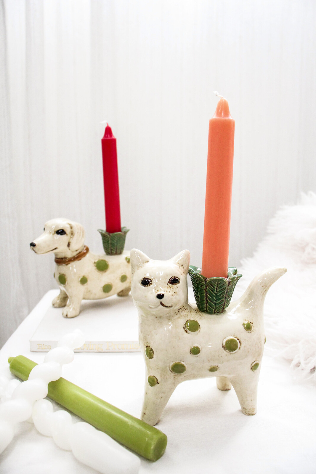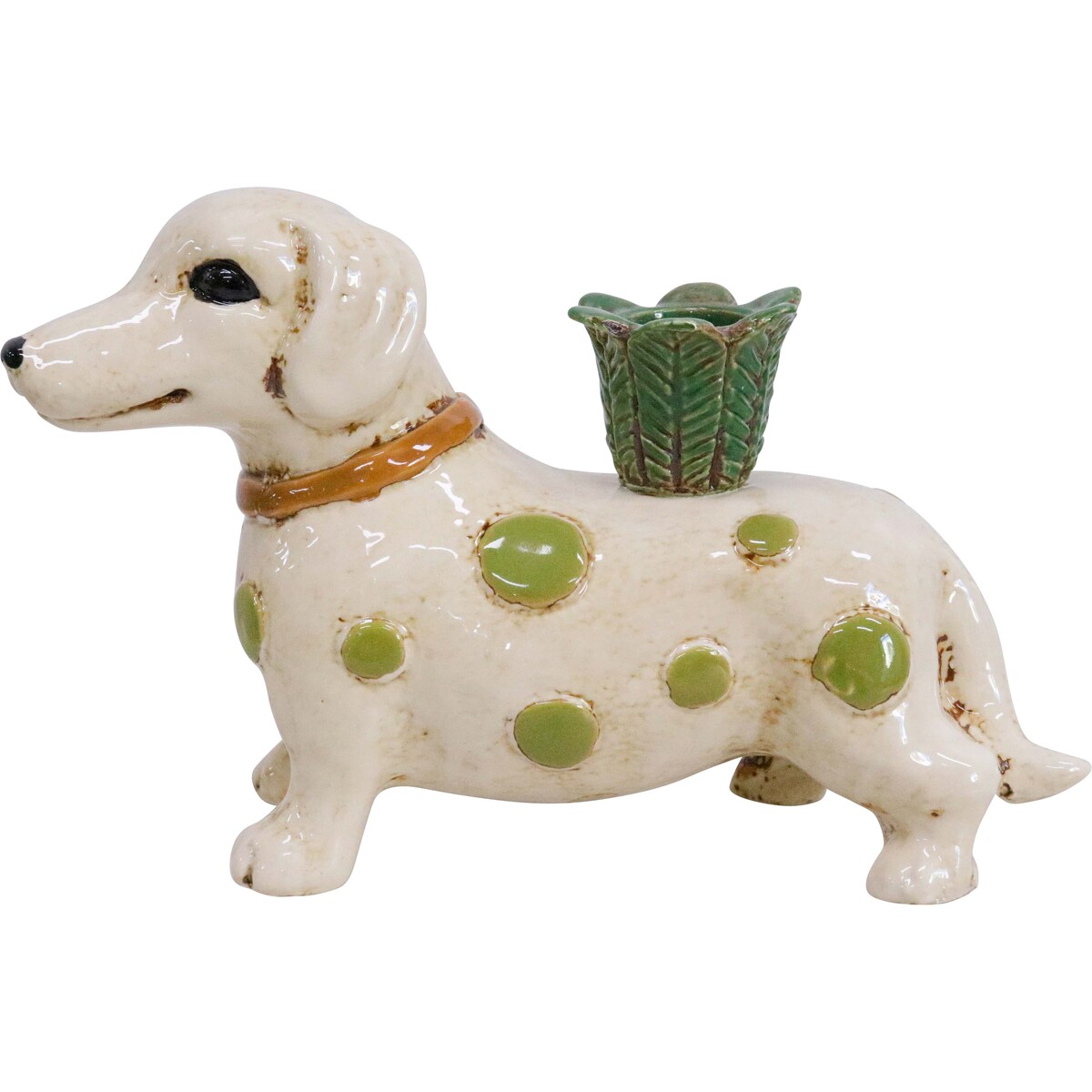 Quirky. A bit cheeky. And a seriously delightful talking point for home decor or gift shops, our Dachshund Candle Holder adds the kind of charm to a display that really gets customers grinning. The hand-finished ceramic body is sculpted into an unmistakable dachshund silhouette and the 20x17x13cm shape is chunky without being too cartoonish. The green polka dots and leafy candle cup on the back take it into conversation-starter territory - and the glaze creates little variations that let you reassure shoppers theirs will never be quite the same as anyone else’s. It’s just the right size for a dinner candle (tapered, not pillar - gotta clarify for finicky shoppers). We can see it going in modern lounges as much as mid-century inspired dining rooms, and yes - that shop dog Instagram content writes itself. They look great in a group too.