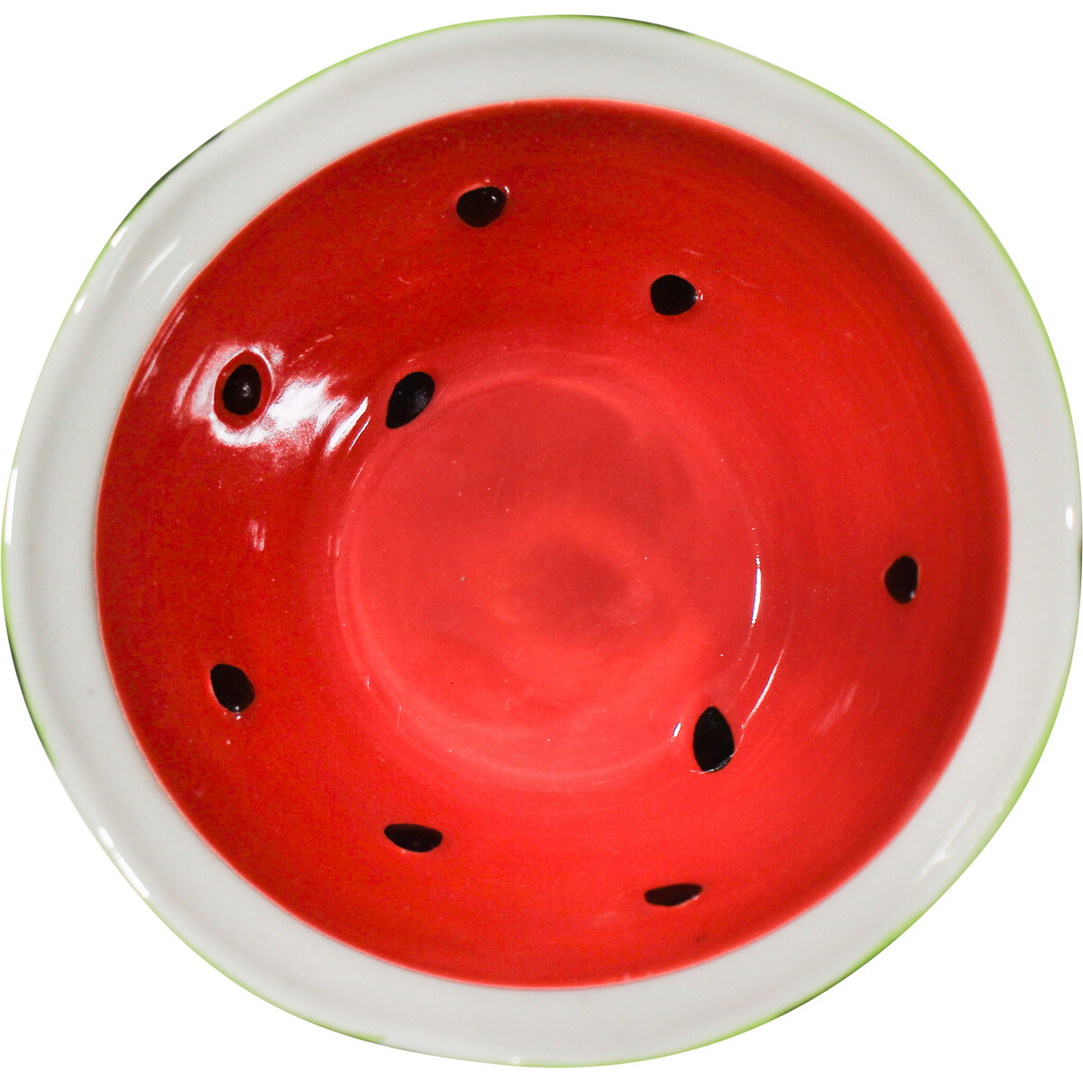 This exquisite ceramic bowl brings life to any table with its vibrant colours and realistic watermelon design. Our Deep Bowl Watermelon has a glossy finish and bright colour that mimics the look of a real watermelon. With its glazed finish, this unique piece is not only stylish but also practical. Thanks to its deep bowl design, one can enjoy their favourite snacks, fruits or salads while bringing the freshness of summer to one's dinner setting. Homeowners can impress their guests with Deep Bowl Watermelon's unique design and attention-grabbing colours. Not to mention, they can show off this beautiful ornamental piece to their friends and family. This exquisite ceramic piece has been expertly designed in a modern style and would be the perfect addition to any kitchen, serving as an eye-catching centrepiece.