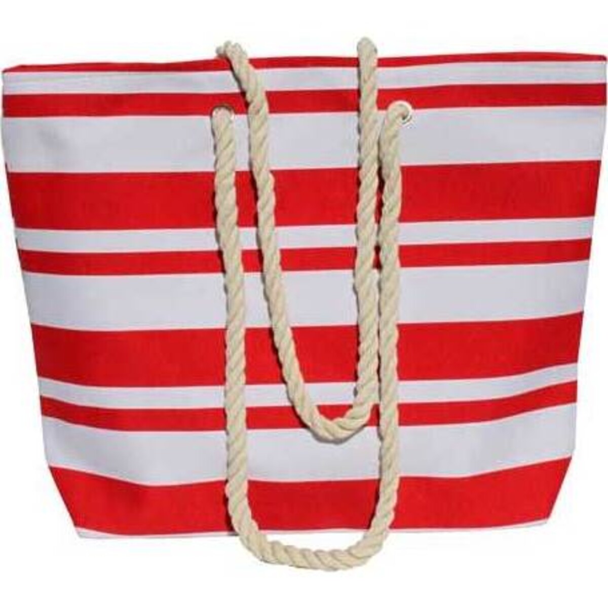 Bags quintessentially also are an accessory and thus the need for them to look good on the person who carries it is an imperative. With this bold striped bag in a gorgeous red, one cannot go wrong .The styling being great says a lot about the concern for the overall quality. The cotton used for the bag is of very high standards as is the stitching and the neat finish. The handles are in twisted natural cotton and feels soft and easy to hold as one grips it. Its main utility is for all those day long trips that need one to carry so many essentials and last minute inclusion that one finds very difficult to find space for in more rigid kind of bags. With this voluminous bag which is almost two feet deep, there is ample space to indulge. The cotton though lightweight retains its shape and the interiors of the bag is done in a coordinating colour. Once filled up, the base of the bag will be easy to place on the ground and because of the rope handles its slinging too will be quite easy. It's a classic contemporary shopping bag with style and functionality to hilt.