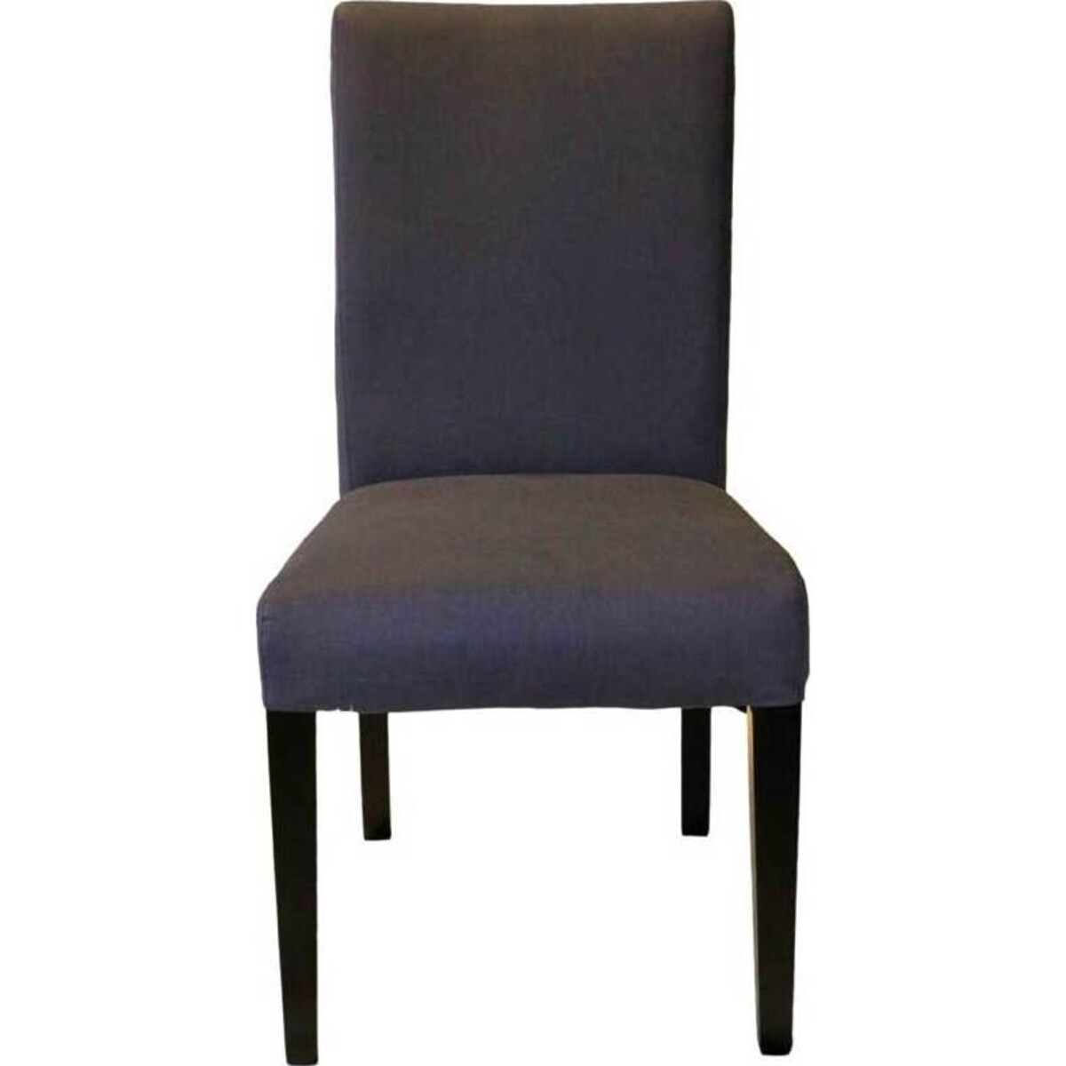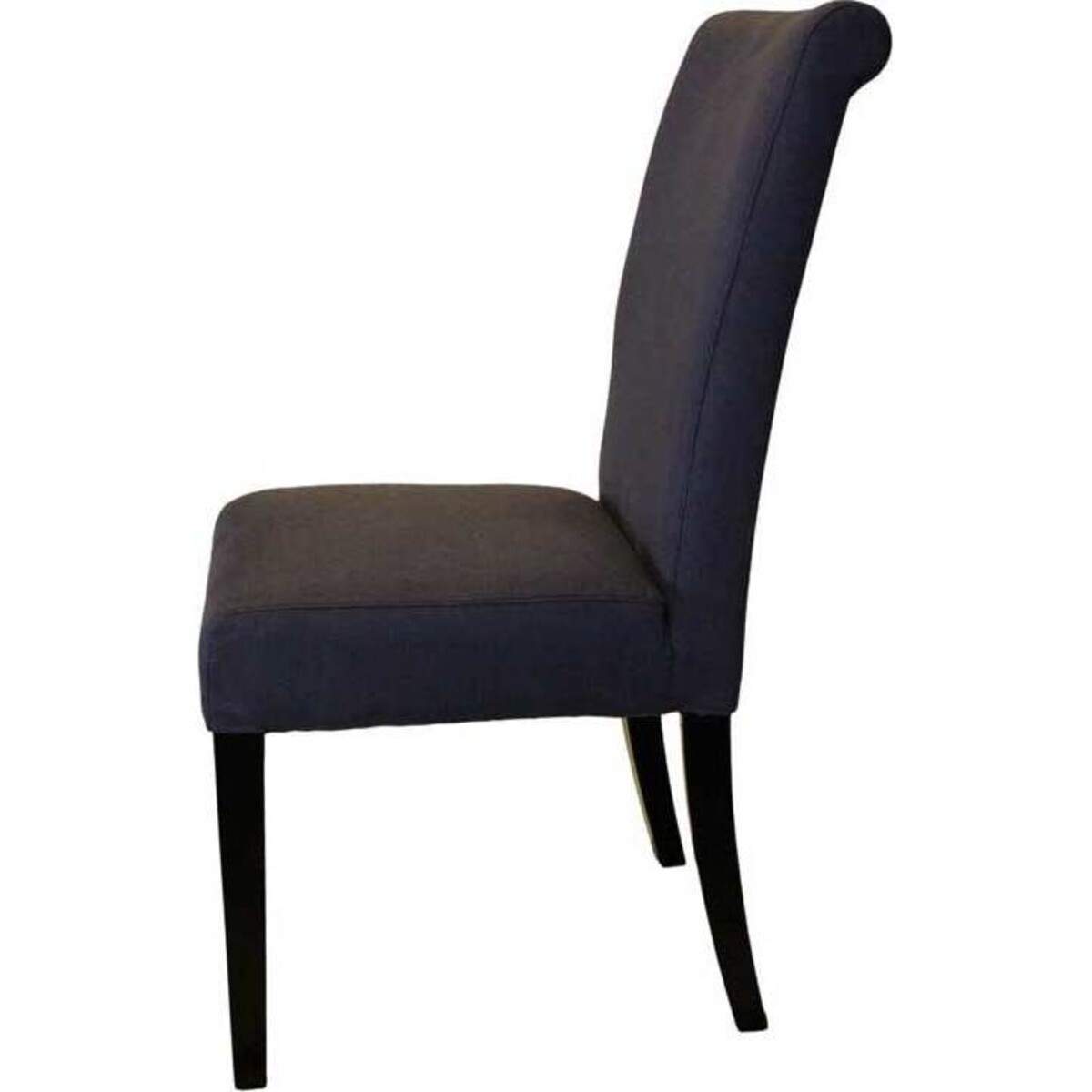 The Lyon Gris dining chair is a beautifully poised fabric dining chair that is perfect for use with darker tables. These comfortable high quality chairs are ideal for any homeowner looking to bring a touch of class and comfort to the dinner table. All too often the wood and metallic designs of dinner table chairs are highly uncomfortable, especially for longer periods of time. However, add a little fabric and padding and you?ve get yourself an incredibly comfortable (and versatile) seat that works well in any home. The fabric is of a deep purple and grey, with an almost metallic sheen to it, and the backrest of the chair is leaned back ever so slightly helping to improve comfort. The legs are strong and supportive and are made from a dark wood. Use these chairs to create a sense of comfort and style at any dinner table.