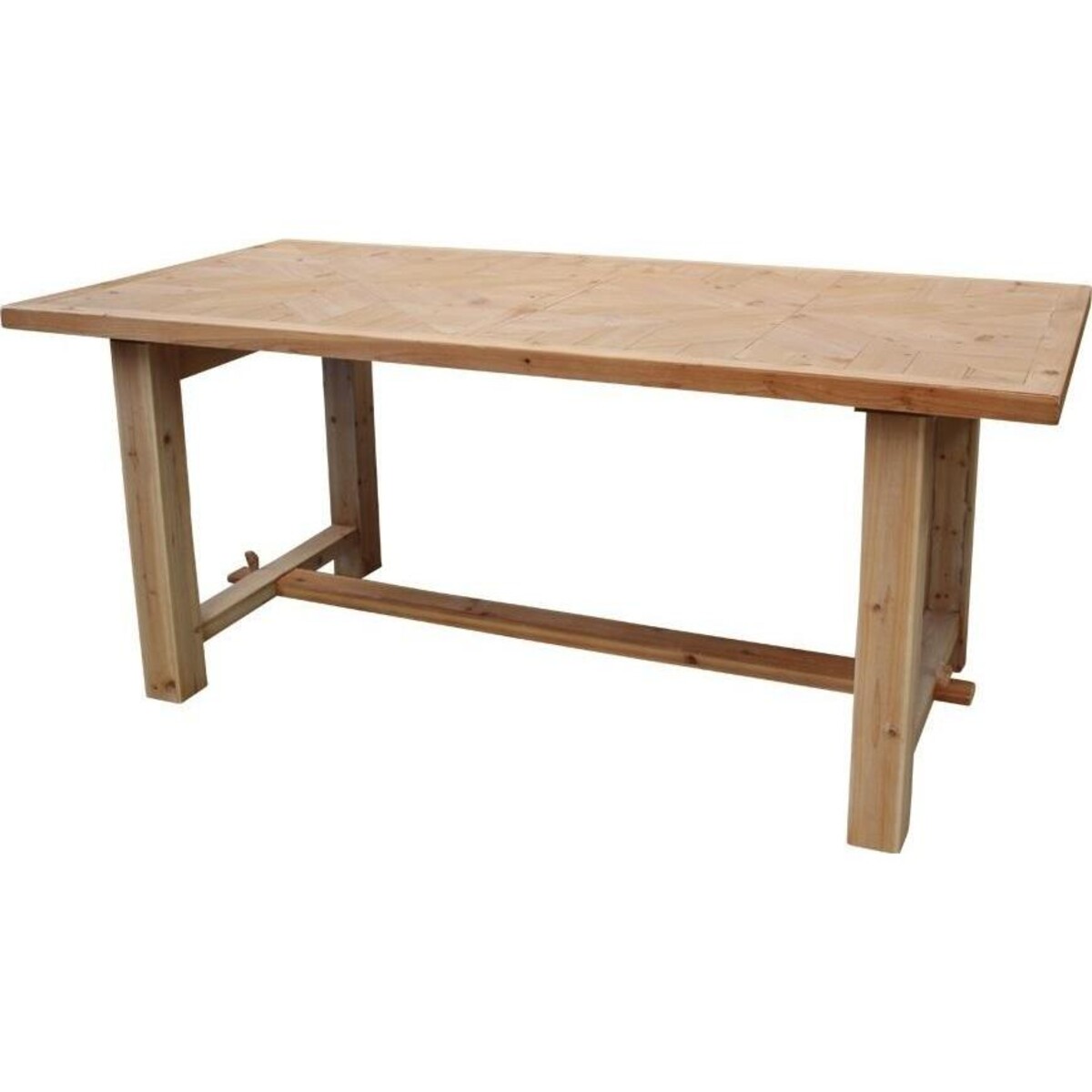 A dining table gives the main centring to your dining space and when the table itself looks rough and the kind that has been assembled in the workshop with a certain kind of industrial appeal - the setting is kind of ready for thigs ore retro modern and post - industrial. The lovely unpolished top and the manner in which the lower structuring has been created further this appeal. Rustic aesthetic of this kind can be echoed in the rest of the decor as well and this dining table will also help get the space ready for ore such pieces building in a chic utilitarian kind of feel. The wood is Trudy and the material in use is high quality MDF and fir wood. The top displays a lovely grain work. Will go profoundly well with a console or sideboard having a similar tonal quality in wood. The table is 18 - cm in length and about 90 cm in width with a height of 77 cm.