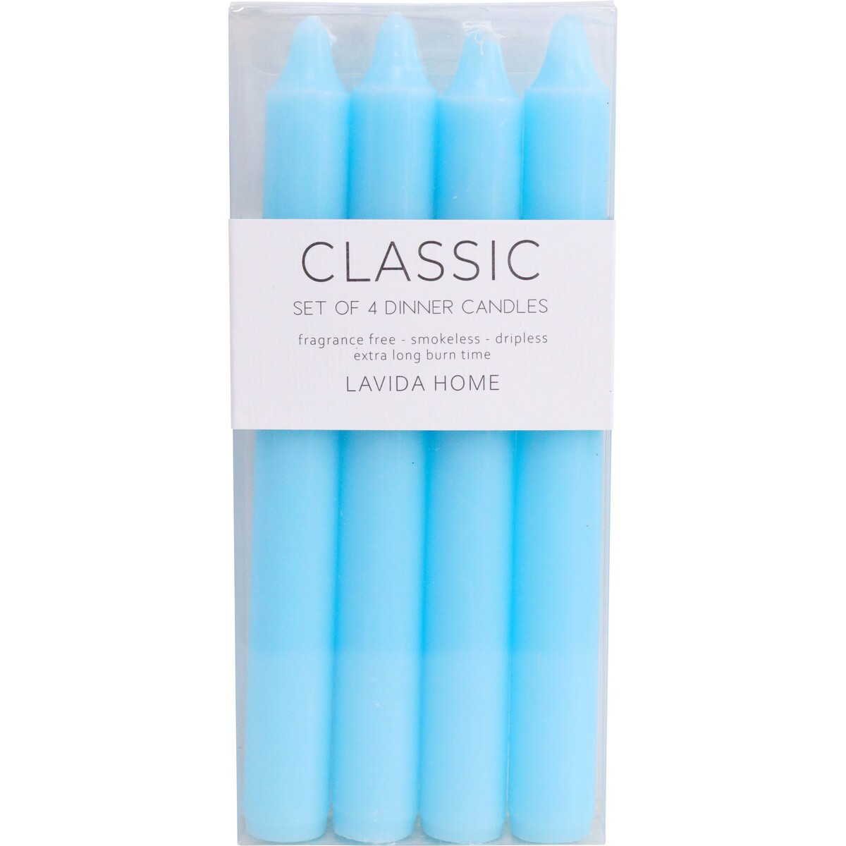 Bring a splash of freshness to any dinner setting with our Dinner Candles S/4 Sky. They're a set of four candles in the gentlest sky blue - very on trend for seasonal decorating and absolutely not the sort of colour that will fade into the background. The blue is instantly calming, and it’s interesting - almost watery but still very much the hue you’d imagine when you think clear skies. Each candle is 20cm tall and made from wax, so they’ll offer a consistent burn and no strange smells.