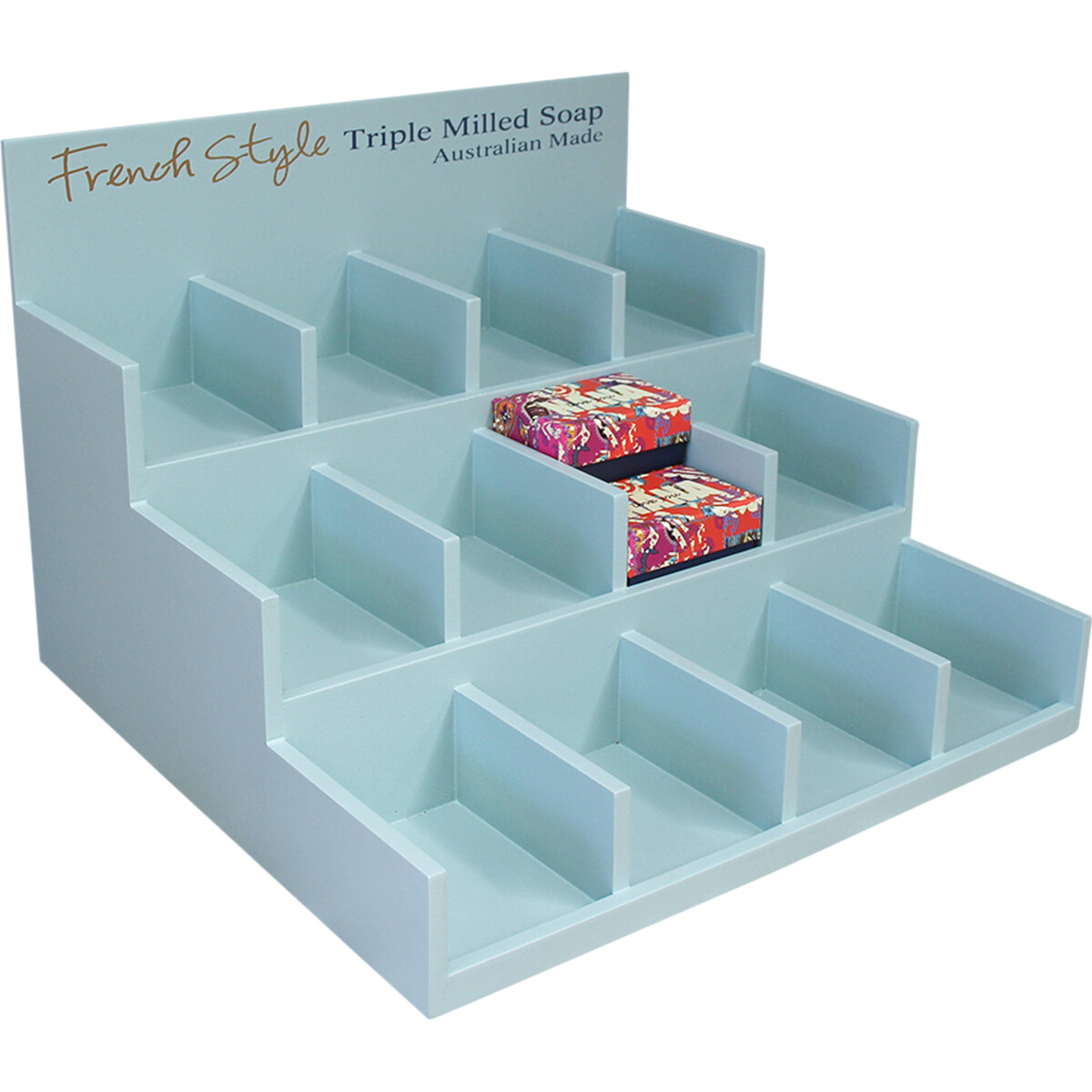Display box made from medium density fibreboard (MDF) has internal bond strength; the density is moderate with a smooth surface. This box is the perfect tabletop display for soap. It gives a traditional feel and also allows for space management, creating an inviting and tidy lacuna. Featured with twelve (12) compartments, it means there is more room for soap. It is a unique idea since most soap comes in packs and multiple bars that needed to be stored at the same time. It comes in a sweet colour to suit any bathroom décor. Clients who are looking for the perfect gift items should consider this unique option.