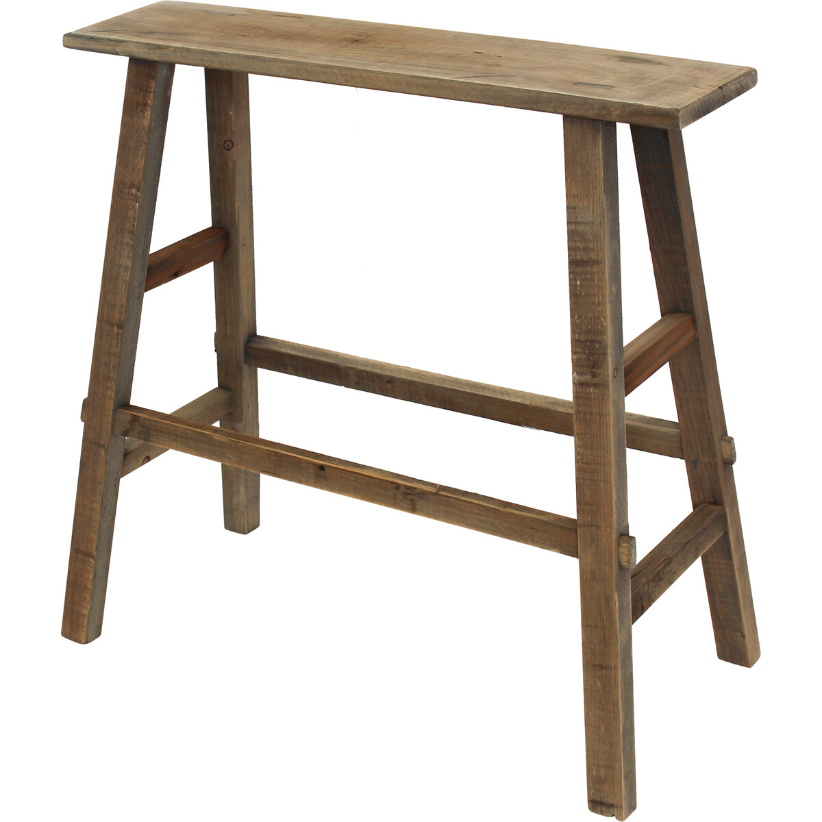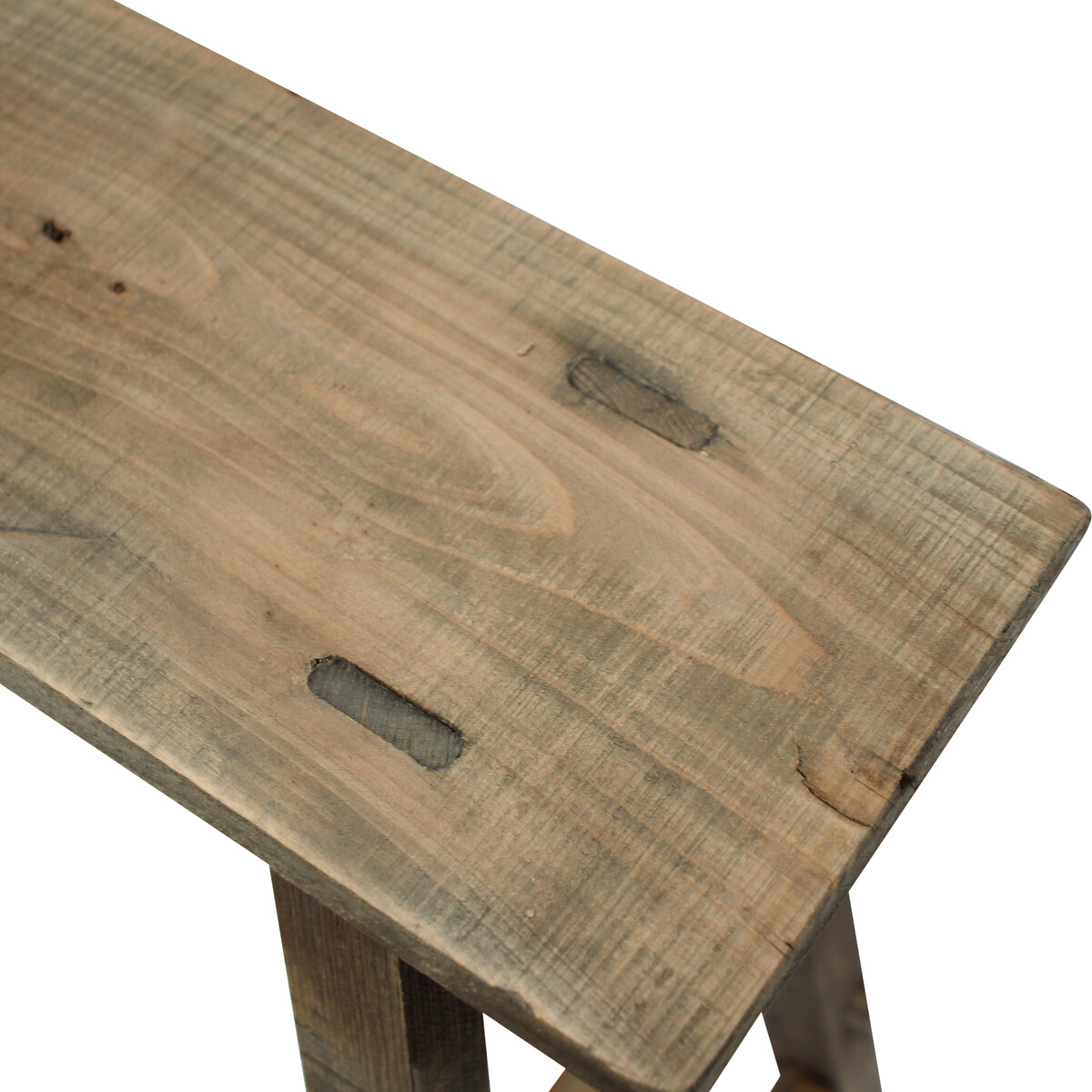 Artistically constructed from a durable material. The wood conserves its neutral shine and subtle hue. The wood has a consistent grain with an eye-catching finish. The side stretcher can be creatively modified as a bottom shelf. This offers a supplementary space to display more items. The rustic stool can also be used in the kitchen to further accentuate potted herbs and household plants. Double Level Rustic Stool can enhance the overall style of an interior. Place this tool in the bedroom or bath as a display surface for toiletries. One cannot go wrong with this item.