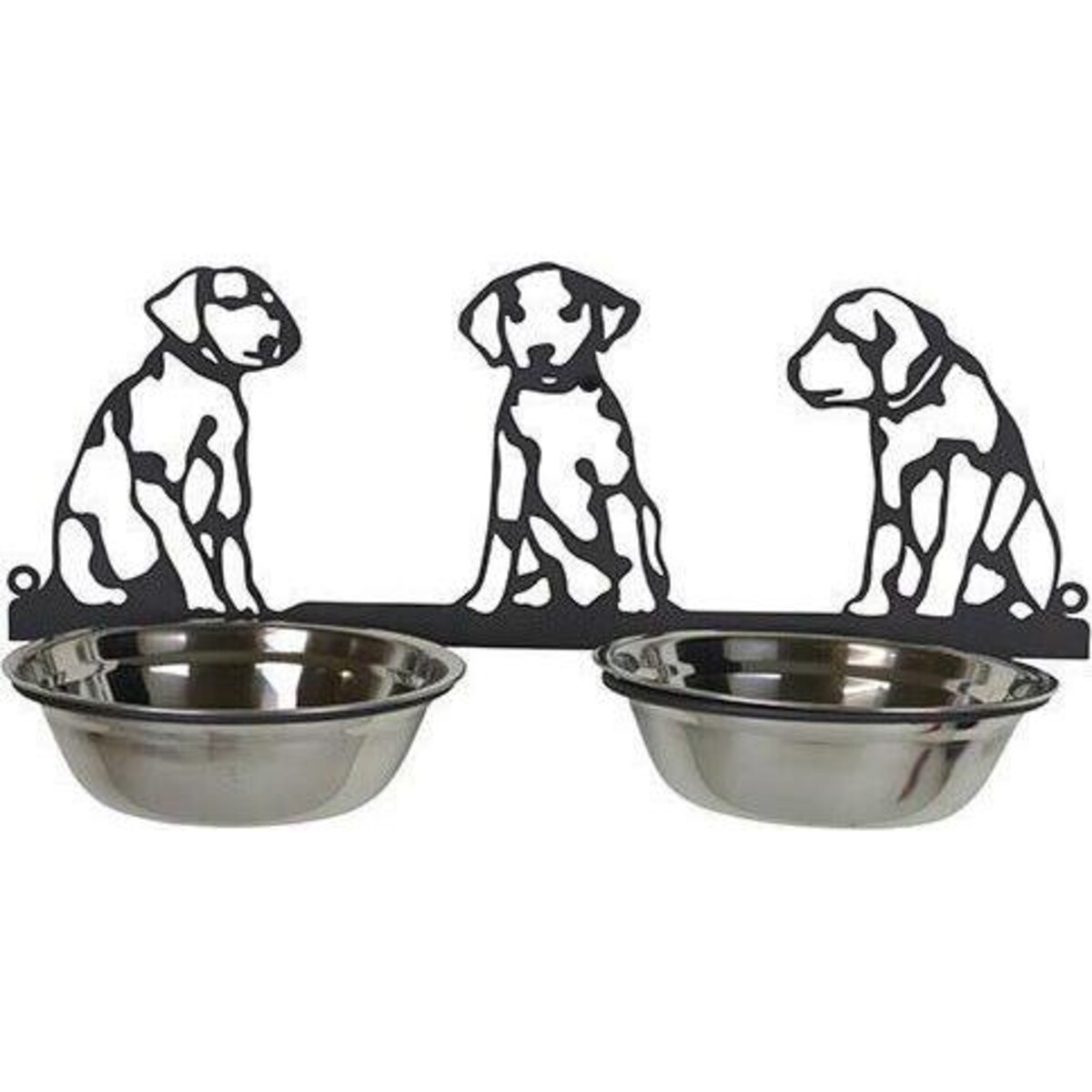 The interesting design with three dogs in various poses looking down at what the bowls, makes up the lovely backdrop of the bowl set. The expert metal cutting that has created this gorgeous pattern , is what makes the bowl set so wonderfully apt for your pooch. All of 21 cm in height , the bowls are attached to a frame that is 41 cm in length giving adequate space for the tow bowls of which one could be for water and another for food. The bowls have diameter of 17 cm making them adequately large for all sizes of dogs. One simply has to find the right wall where this frame could be placed with the help of sturdy nails for which clots have been built in. The important part being of course that one would have to find the right elevation according to the breed of dog. A lovely little gift for your pooch to make his meal time all the more special.