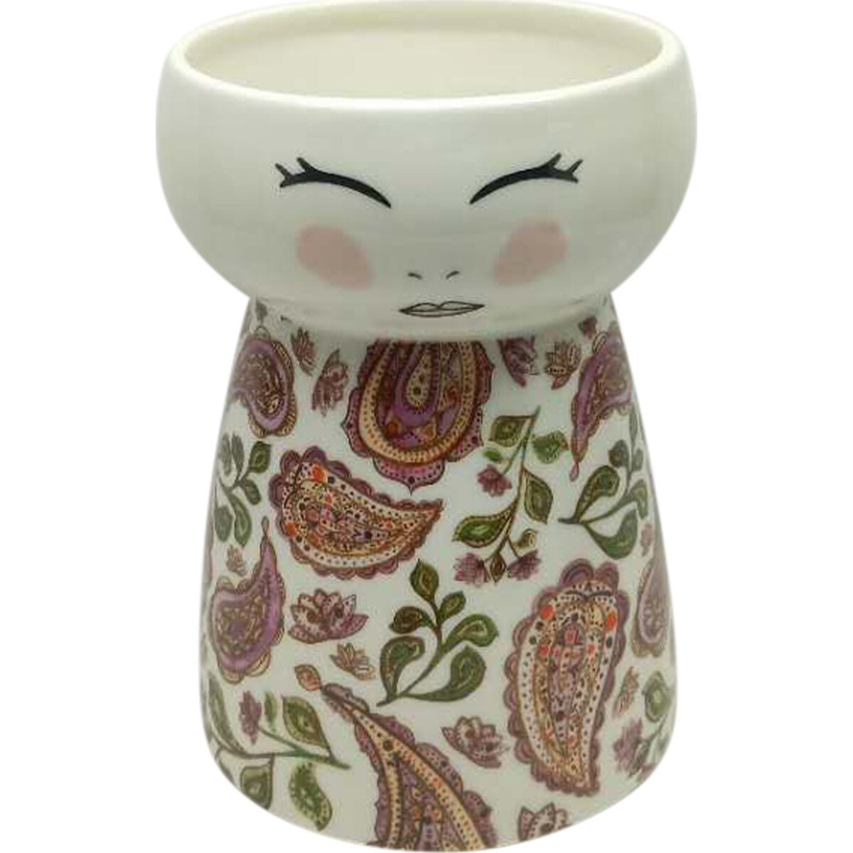 It is definite that your customers would fall in love with this Doll Vase Pretty Paisley the moment they see it. This is because this vase is captivatingly beautiful and colourful. Apart from being practically useful as a vase which can be used to house a huge variety of flowers, it is also glazed with an attractive paisley design which is nothing short of stunning! This paisley swirling motif is rendered in a variety of colours over a white background. It features bright colours such as green, brown, purple, etc.