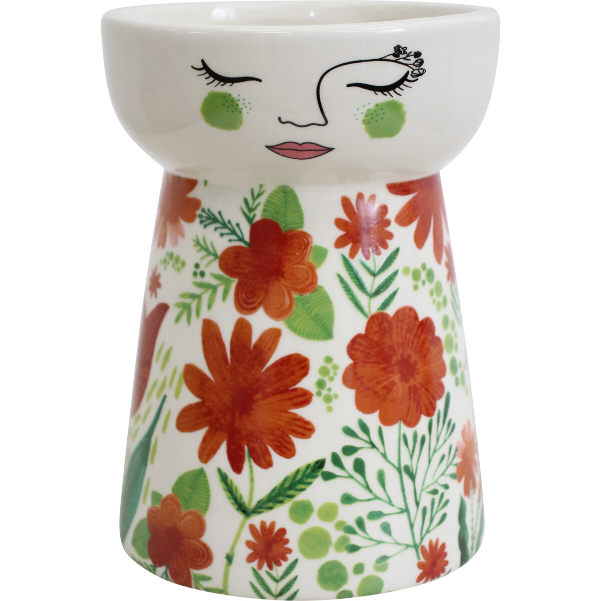 We are genuinely obsessed with our Doll Vase Springtime - the bold flower pattern combined with the playful hand-painted face is just too charming. These vases liven up any space - really, the colours are so eye-catching and bold that shoppers will reach straight for them. The 11.5x11.5x16.1cm size makes it super versatile for desks, sideboards, or as a centrepiece on a dining table - without being so large that it's tricky to merchandise on retail shelves. It fits right in with boho, vintage-inspired, and eclectic decor trends, and people love that they can use it either as a vase or as decorative object for pens and odds-and-ends.