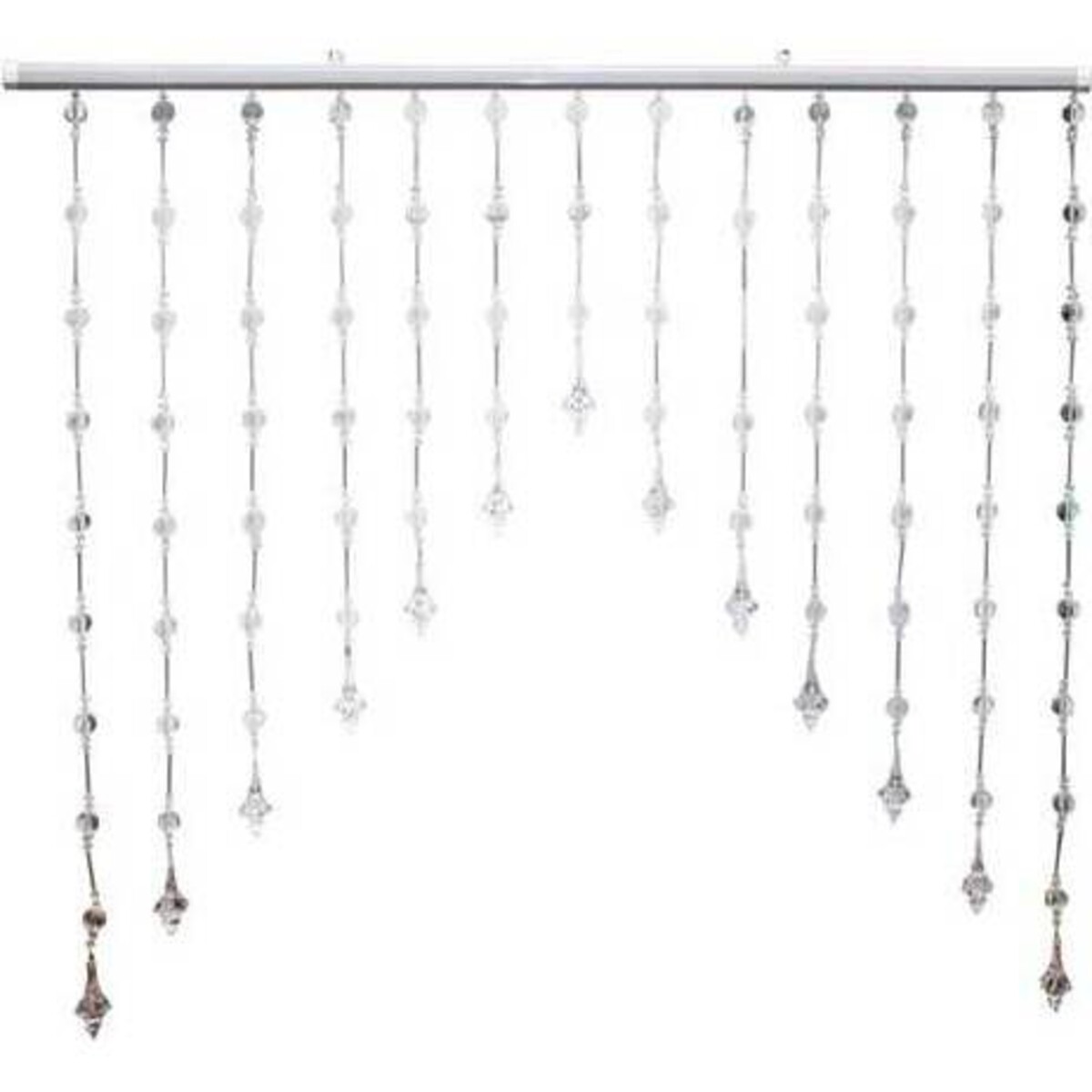 They can be used as an inexpensive and decorative way to separate rooms and offer some privacy without closing off the room completely, or as window treatments that allow light to come through. • Our Clear Ball Door Arch fits a standard three foot doorway or window. • Large faux crystal balls are strung about 2.5 inches apart and hang between silver tone stem separators. • Large fancy cut faux crystals at the bottom of each strand take a trumpet shape. • Tough acrylic is used for long lasting durability. We have several choices in door arches to help you fill you inventory needs. Stock them year round and display them with other window treatments such as drapes, curtains, swags, and blinds.