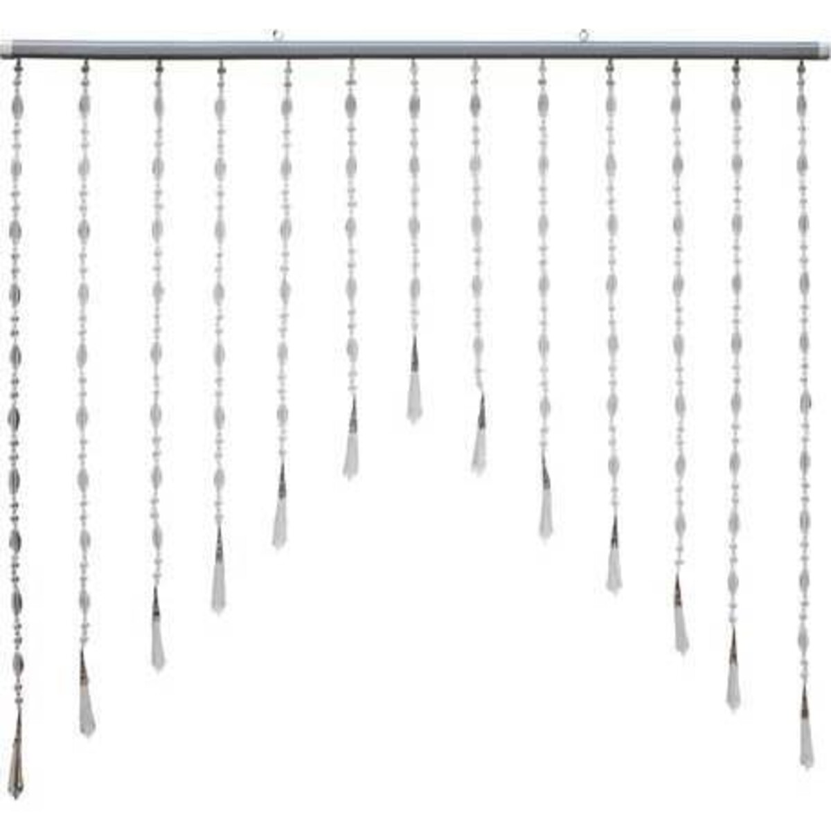 • Our Clear Icicle Door Arch is just over three feet and fits most standard doors and windows • Beads of made of high impact acrylic for long wearing durability • Disc beads on strands span about 2.5 inches apart • Small bead spacers are used to add dimension to the design • Large tear drop pendants at the end of each strand give a weighty richness to the arch Stock this and all our other door arches year round. They make a great addition to your existing window treatments such as curtains, drapes, swags, and cornices. Display them in garden and patio to add interest and draw customers through the store.