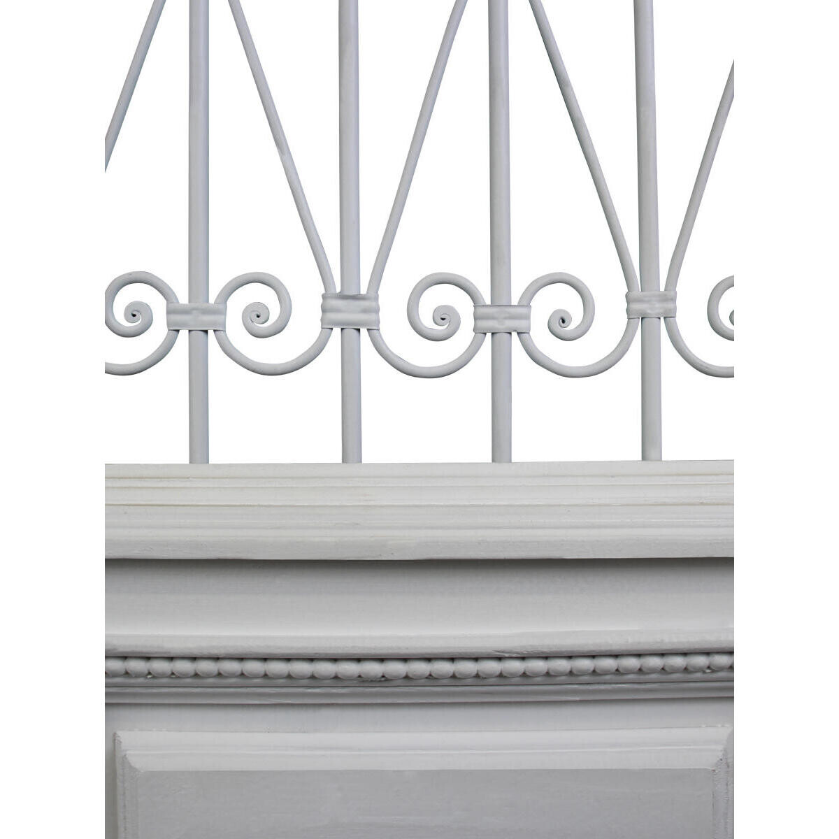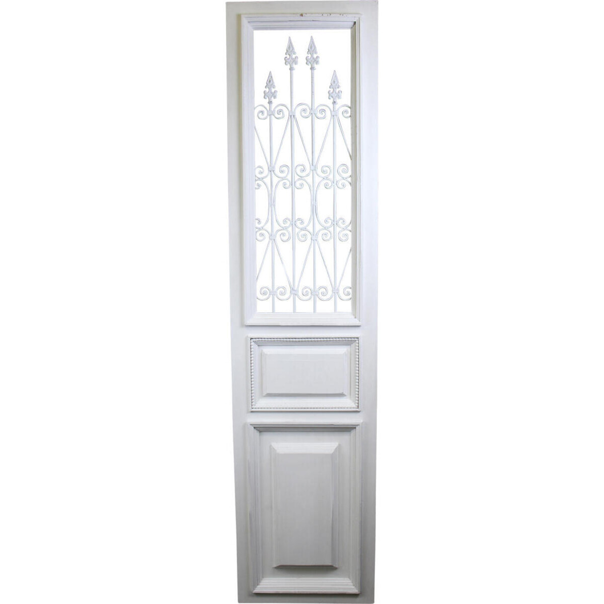 The gorgeous panel can be your best bet to give more liveliness to your doors. Made of timber and metal, the gorgeous grill work has been expertly crated by metal smiths. The sturdy spikes add a touch of antique charm very medieval yet the kind that could lend a modern home a hint of classic charm. The white coloured panel would be perfect for front doors or would also look riveting bold when placed like an adornment on the wall forming thus a backdrop. Could be used like a divider for a large room that needs to separate its two nooks or spaces. The height of the panel is all of 180 cm and its width is 43 cm. While the upper portions is impressively honed from metal rods in spiked shape, the lower body is entirely created from high quality mature and aged timber. And impressive means to add a classic touch of grace and elegance to your entryway or walls. Could be teamed up with contemporary look furniture and other pieces of furniture owing to its rather universal kind of design appeal.