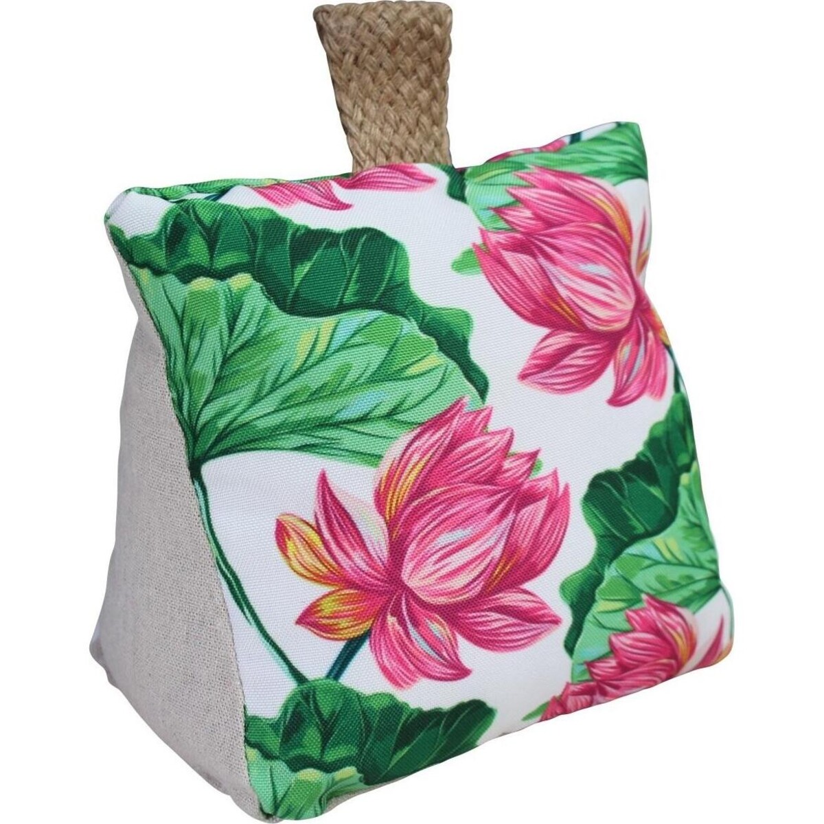 Give entryways of your home the loveliest of simple makeover by adding this pink water lily doorstop whose colourful print on white fabric looks stunning. Place this next to the heaviest of doors and see how its sturdy structure and toughness manages to keep the door. However heavy well under control especially useful for those homes next to the coast. The doorstop has a handle like loop on the top which helps in carrying it from one room to another entryway rather easily. Ease the problem of holding on to doors and let this pink lily doorstop come to your rescue especially when you need to bring in heavy furniture or when the shopping bags take up both your hands and have to be ferried in. There is your old trusty lily doorstop to do the needful. Place this in any room and feel the cheery colourful presence right at the entrance. Made from sturdy stuff-its weight is perfectly balanced so as to give it a great grip on the floor.