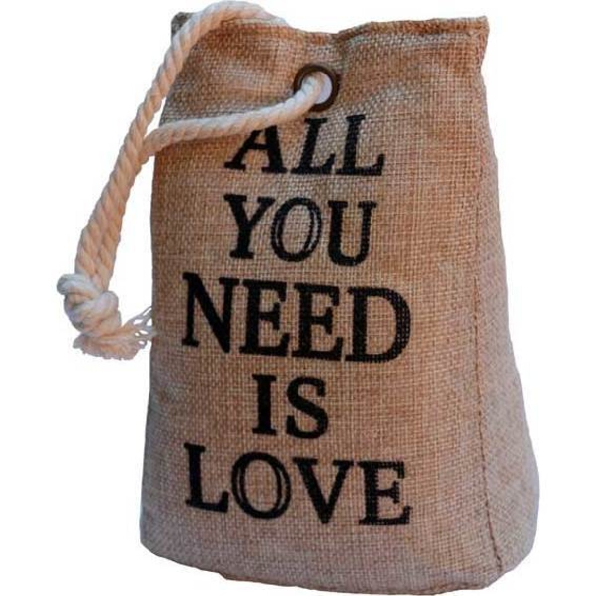 About 18 cm in height and 10 cm in width, this one kilogram weight doorstop is the kid that will stop doors from slamming shut and help save one from accidents especially that involve children who are unsuspecting of the weight of the door and could get hurt. A neat design almost like a bag made of packaging material - this doorstop is quietly efficient in its work and will with its simple message garner more appreciation - it reads - All You Need Is Love - words prolific and simple all at once. While the doorstop in itself is compact, its base being broad. It is the kind that will with its wider base distribute the weight correctly for more effectiveness. The bag like doorstop also has this rope loop with which it could be picked and placed easily.