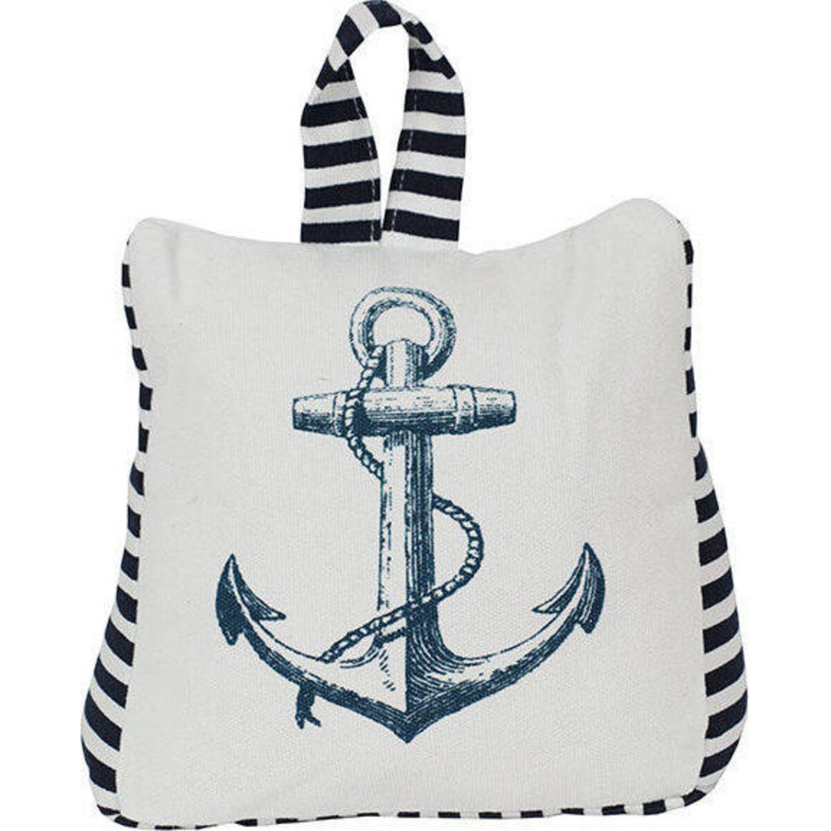 This door stop will ensure that your door is kept ajar just the way you wanted it - after all if you are concerned that the children's room is a little more accessible or if you worry about your toddler or little pup getting hurt due to a slamming door - this door stop could come to your rescue. Especially for those who live in places where the wind does play up and make doors slam shut rather violently, there is always the need for sturdy and well - endowed door stop that will create the all - important wedge. This piece has been filled with sand and will be easy to move around with the help of the rope handle that is fitted on top. The seams of the bag like doorstop are pretty strong and you can be sure to use it amply around the house. The graphic of the anchor of course creates a vivid and marine theme splash which looks smart yet traditional at the same time. About 27 mc in height, the length of the doorstop is 17 cm and width of 8 cm.