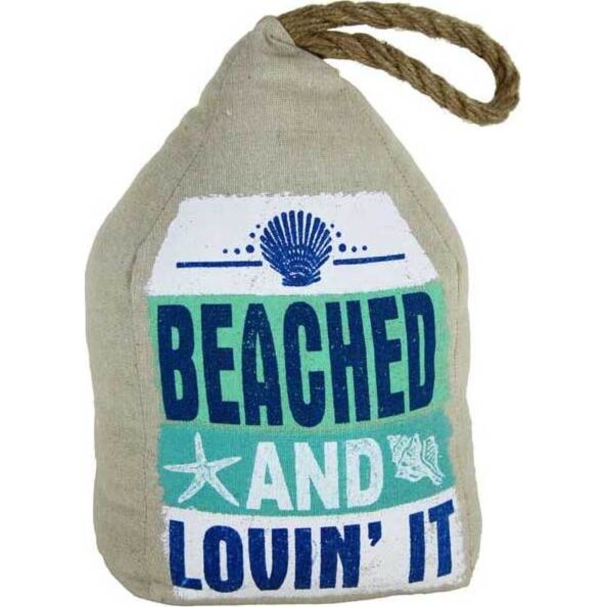 Beached! Says this rather pretty burlap doorstop printed in a lovely sea blue that will help you prop open doors at home or in the office. The message is nautical in theme - the words - Beached and lovin' it - instantly brings in the cheerful ambiance of some sea side resort and love for the sea. It also brings to mind heavy gusts of wind by the shore and how doorstops can be such a life saver when doors need to be kept open without slamming shut with each gust. Standing 24 cm tall and 16 cm in length, the cotton burlap doorstop has this rope loop on top that makes it rather convenient to manoeuvre the weight around or shift it to idling position. Lying around with its quirky and fun message looks, it manages to look rather nice and the pleasing colour too does wonders for its highlight. The weight is adequate to keep even heavy doors open in gusty conditions as well.