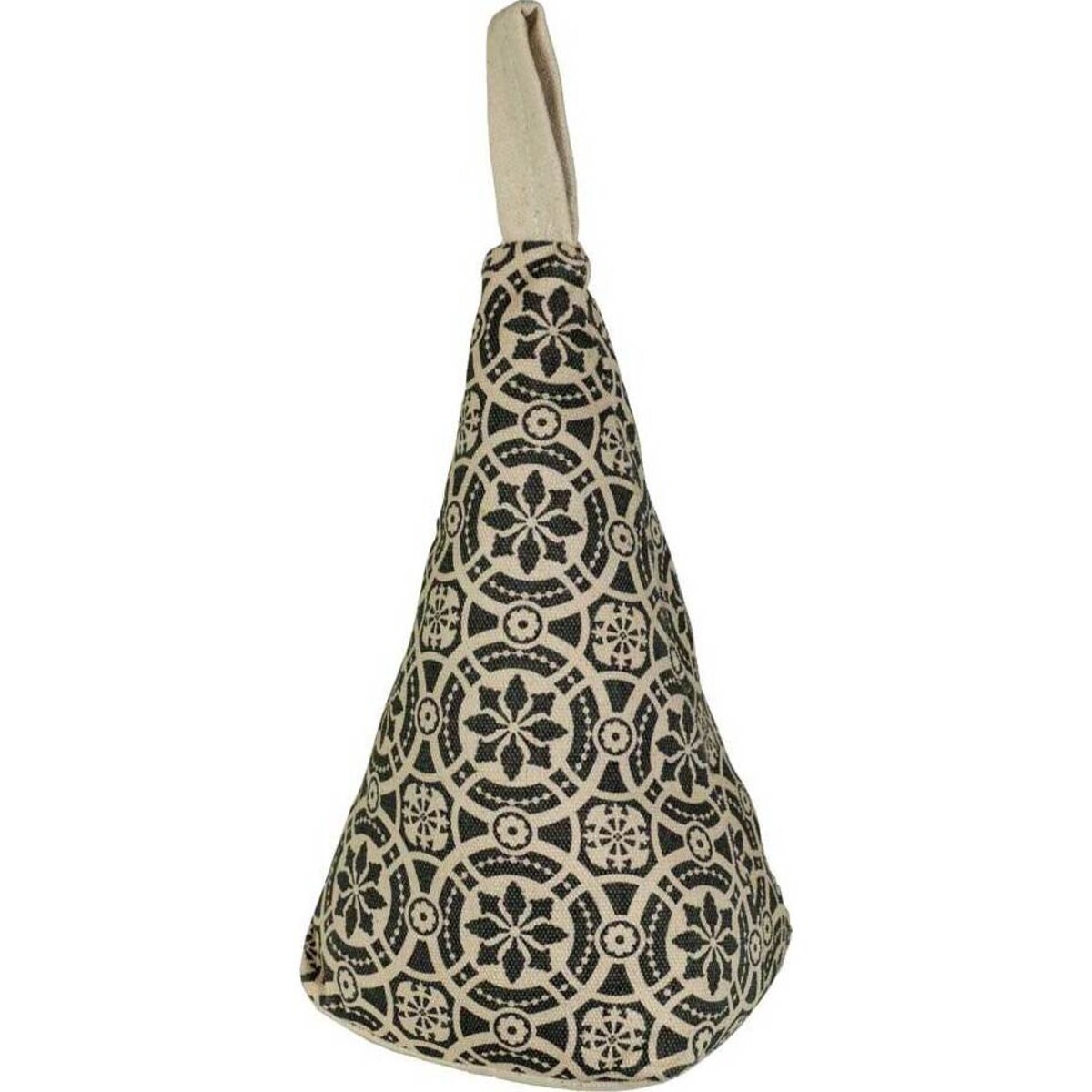 These doorstops are comprised of cottonfelt, sand, and twine, so not only are they lovely, but they're sturdy. They're small enough to not get in your way, yet large enough to ensure that doors stay open when you want them to. With a tan background and black detailing, the triangle-shaped doorstops are going to incorporate well into your décor. A loop at the top allows for easy carrying from one spot to another.
