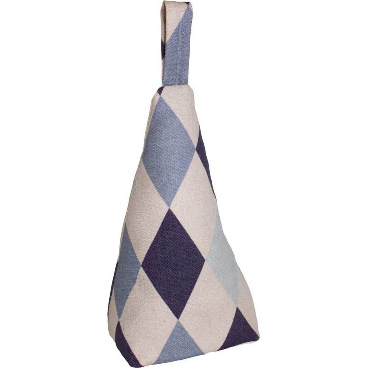 Doorstop Blues Diamond is a special tool for stopping doors. It features a covering of cotton fabric with diamond prints of alternating blue tones of varying intensity, along with ones looking cream - like. This pyramidal object also exhibits measurement of 14x14x25 cm and can be applied at any place which requires good control of interior atmospheric conditions. Wind can for instance blow in large amounts of dust, whereas showers of rain might be blown in during rainy spells. It is easy to check such incidents by investing in several Doorstop Blues Diamond gadgets, whatever the condition of air inside a room.