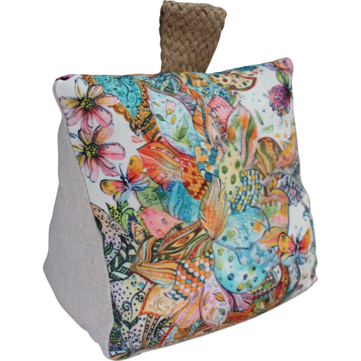 The structure is sturdy-the delightful print making the white coloured backdrop of the fabric come alive with electrifying colours. Here is a doorstop designed to give you safe and slam-free doorways -especially in places close to the coast where the wind suddenly can play naughty. Made from rugged and tough quality linen and jute, the doorstop has a rope and handle like loop on the top that allows one to hold it with ease. The white colour looks fresh in a summer ready home and the infusion of colours it will bring is terrific in its energy. Be it to bring in the furniture without having to hold the door with one hand or be it to make sure the door is safe when kids are running in and out-this trusty doorstop will give you perfect functional features.