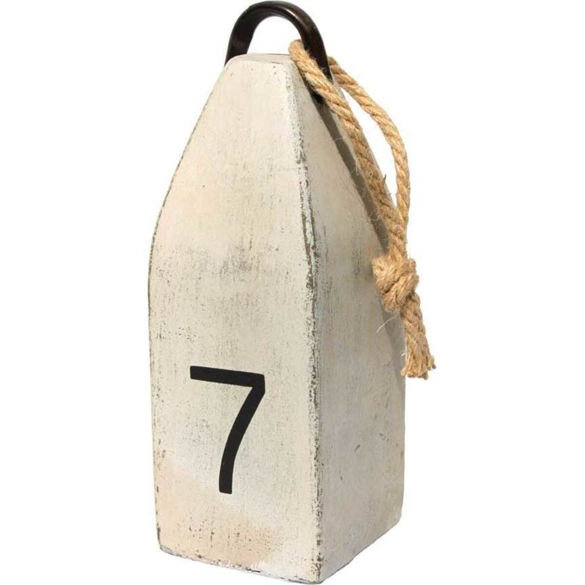 Doorstop Bollard 7 is a special product featuring a cone - shaped solid base with large black painting of '7'. It is painted white having black metal hook at the apex, upon which a rope is tied in a knot. This helps in fastening the door - knap onto the gadget. It measures 9x24x9 cm and becomes useful especially during summer when both internal and external temperatures tend to shoot up by drastic levels thus endangering the lives of people shut in within buildings. Several of them may be needed for a home or office with multiple doors to ensure that air circulates at fast speeds. The rope may be adjusted gradually to achieve the ideal balance of aeration.