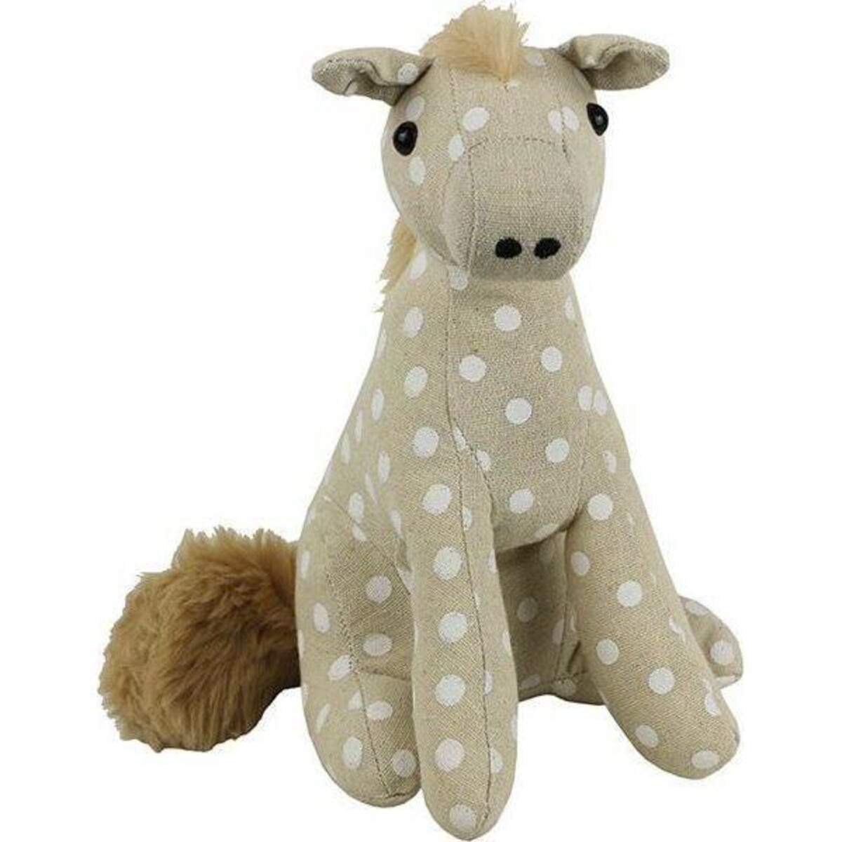 Add that charm of an animal figure to a mundane little object that seldom gets its ounce of importance. Here is a completely new idea in design in doorstops that help keep your children's room doors from slamming shut and makes them more accessible all the time. This little horse will sit at the door ensuring that there are no accidents near the doorway, guarding against winds. Filled with cotton and sand, the height of the polka dotted beige friend is all of 21 cm and it seems to be resting on its back thus giving its base a lot of solid support and . It furry tail end and the mane are simply adorable as are its tiny ears, eyes and its nose. Add this to your children's room and make it seem a more fun place. Will make an adorable housewarming gift and such are its looks that despite being fashioned around what kids would love, it's very cottage kind of charm will surely make you want it in any part of the house.