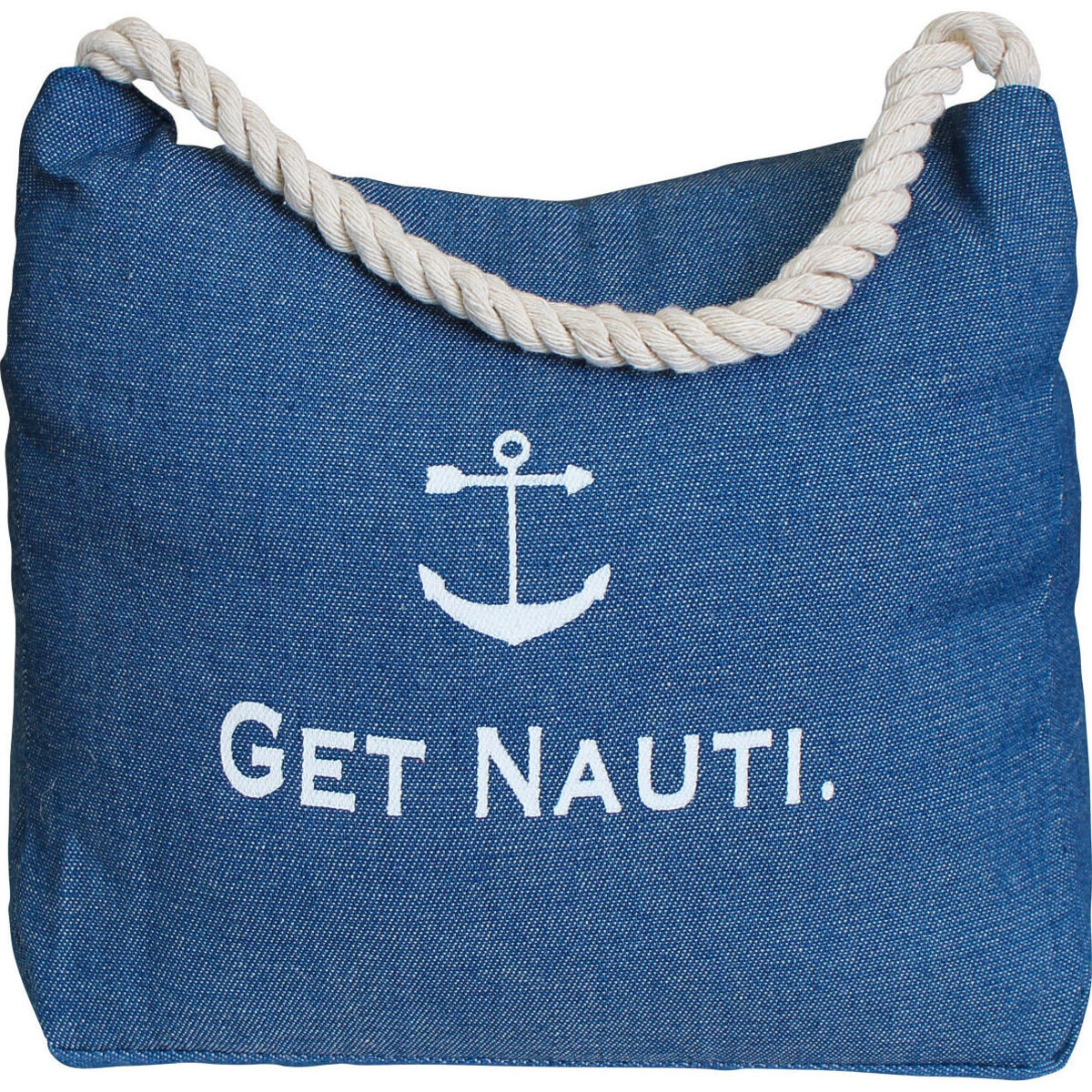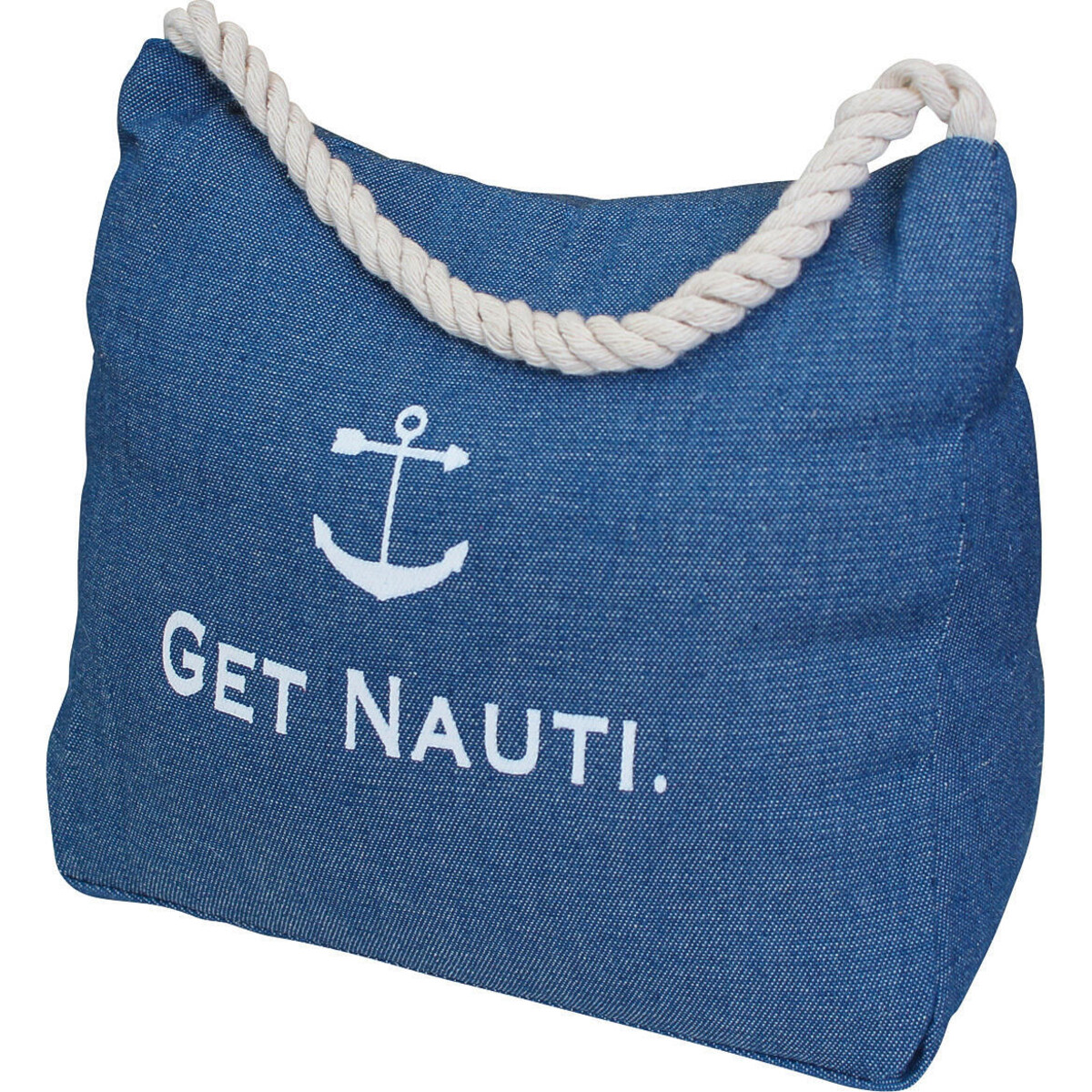 Every home that wishes to keep its doorways safe needs doorstops-especially of you happen to be in areas that are affected by gusty winds or if your hoe has toddlers around heavy doors. This splendidly structured doorstop has been created from polyester fabrics that is dyed in blue and carries a simple message on top-it simply says what any marine lover would like to follow-get Nauti! The anchor and the white message alongside adorns the face of the accessory-the rope handle on top is fitted into the top corners giving it a neat finish. The height is all of 17.5 cm while its width too at 18 cm makes it quite squat and a kind of design that will grip the floor rather well, however heavy the door and however gusty the winds. Relay on this nautical themed doorstop to uppe the style quotient of your entryway door or any door in between and give you a much-desired colour pop in certain places.