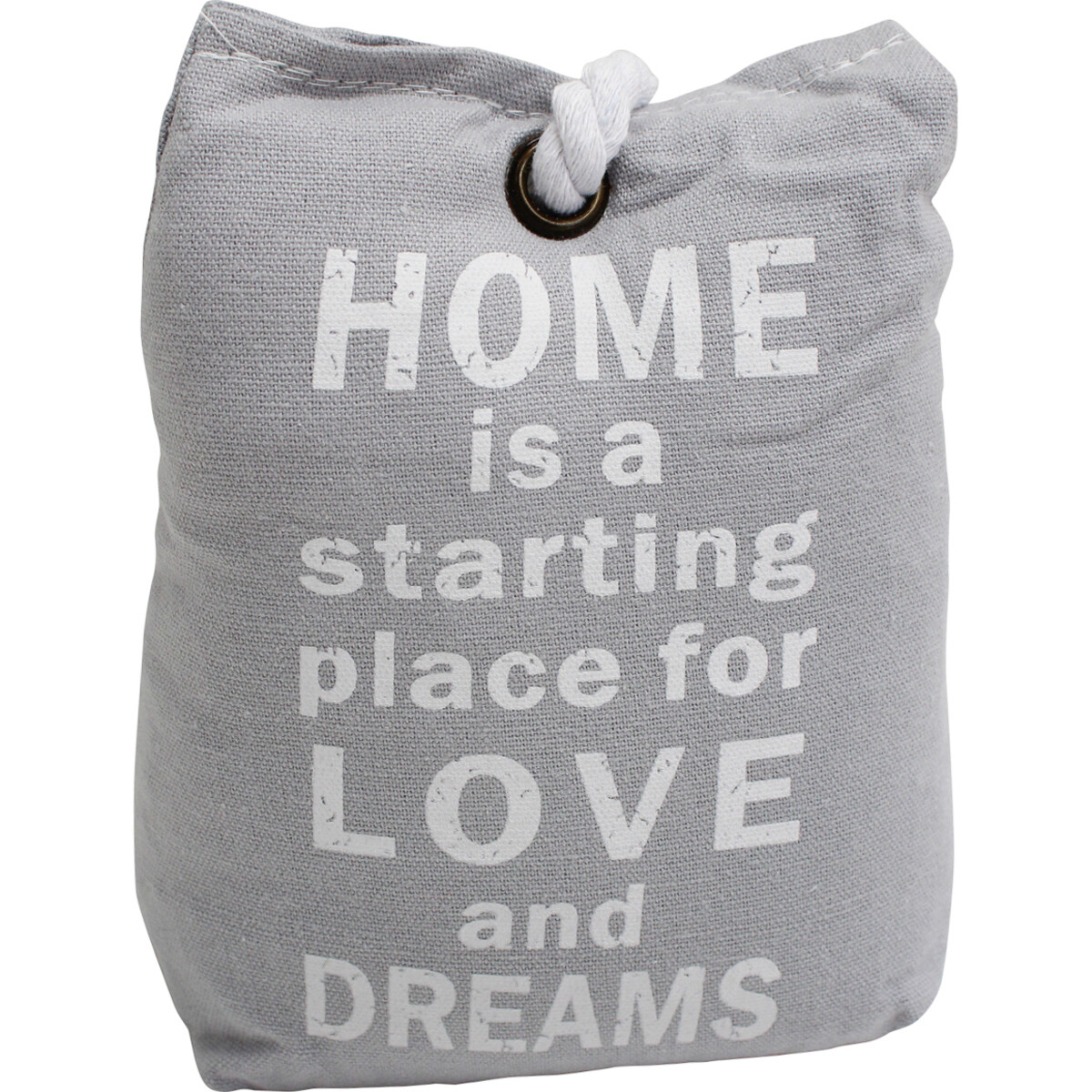 Featuring a homely bold design with white lettering that sets the right mood for amusing and likewise inspiring. The design places emphasis on home and goes a long way to inspire one to love, dream, and raising the bars high. It gives rise to the home being the birthplace for happiness and never giving up on dreams. This universal door stopper characterizes a polyester bag with a thick jute handle. The best feature of polyester is its wash-ability and proficiency to resist wrinkling, and it's easy. This doorstop is made from this strong natural fibre so that it can stand the test of time. Let this doorstop stand on its own to make a design statement.