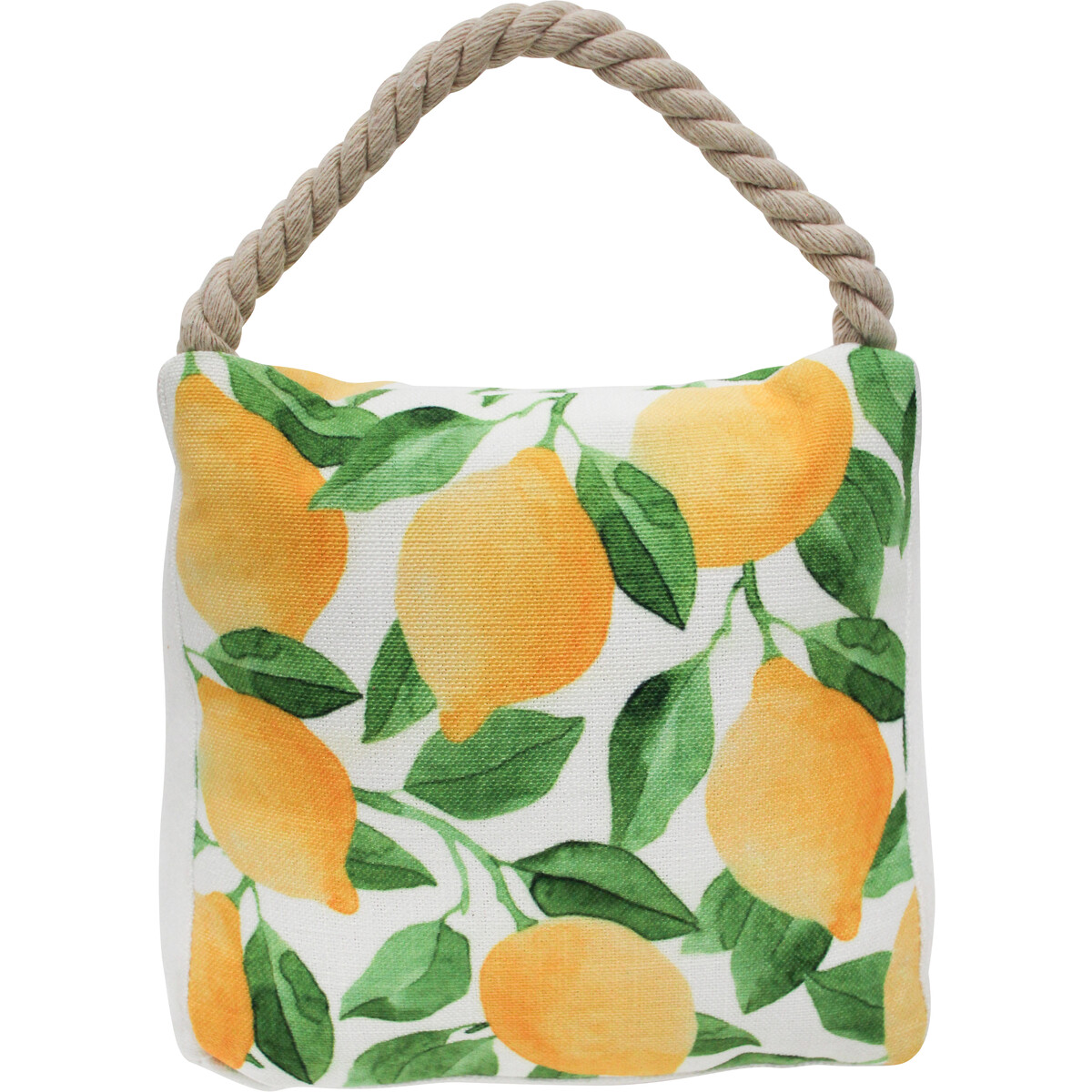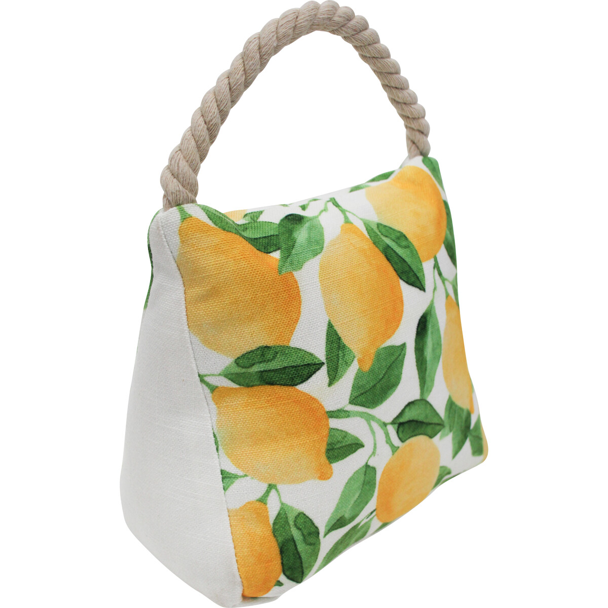 Did you know that not only are lemons rich in Vitamin C, but that the trees also produce fruit all year round? It is this amazing fruity fruit that inspired the fine ornamentation which decorates the exterior of this fabric made doorstop. Almost looking like square shape, the two sides of this doorstop is ornamented with the painting of several fresh looking lemons using bright shades of green and orange over a white polylinen background. It is just as practically functional as it is visually attractive.