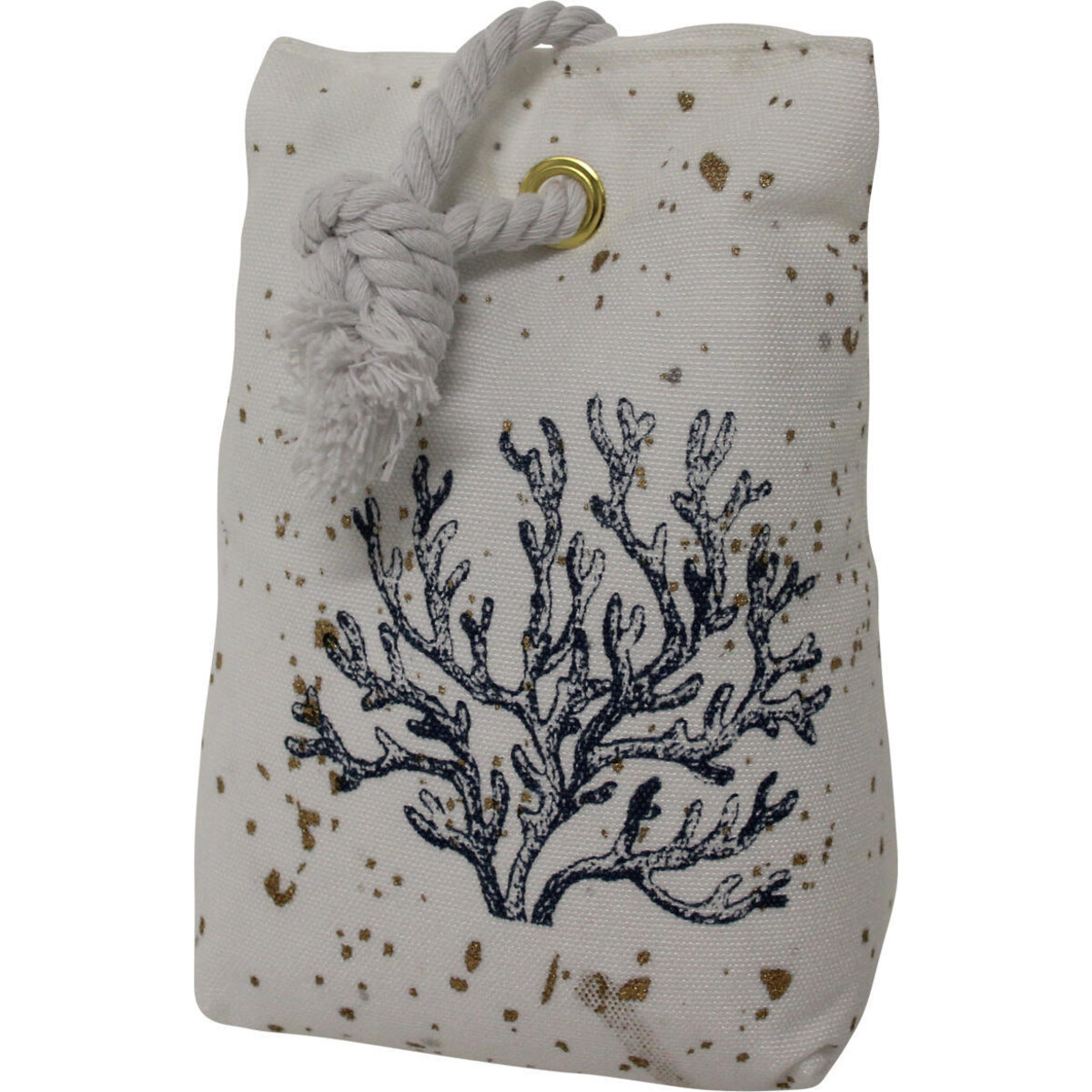 Play round with the use of doorstops and render not just the door much safer when billowing winds enter your home, but also let it help liven up dull doorways with their tiny but important presence. The wind does play up quite sneakily, making doors slam shut and sometimes being quite a hazard when kids are around. This marine themed piece is all white with a coral print on the face and a rope handle that has been slotted through the top. The knot and the colours in blue and white in itself add a touch of seaside freshness to it while the knotted top makes it easy to be moved around to a door where it could be deployed. A stunning design, perfect for homes that need more accents and additions to make the marine theme look more centred. The polyester fabric is tough and resilient and should be able to bear the wear and tear. The weight is adequate for the doorstop to not yield to the weight of the door, however heavy. About 20 cm in height and 7.5 cm in thickness.