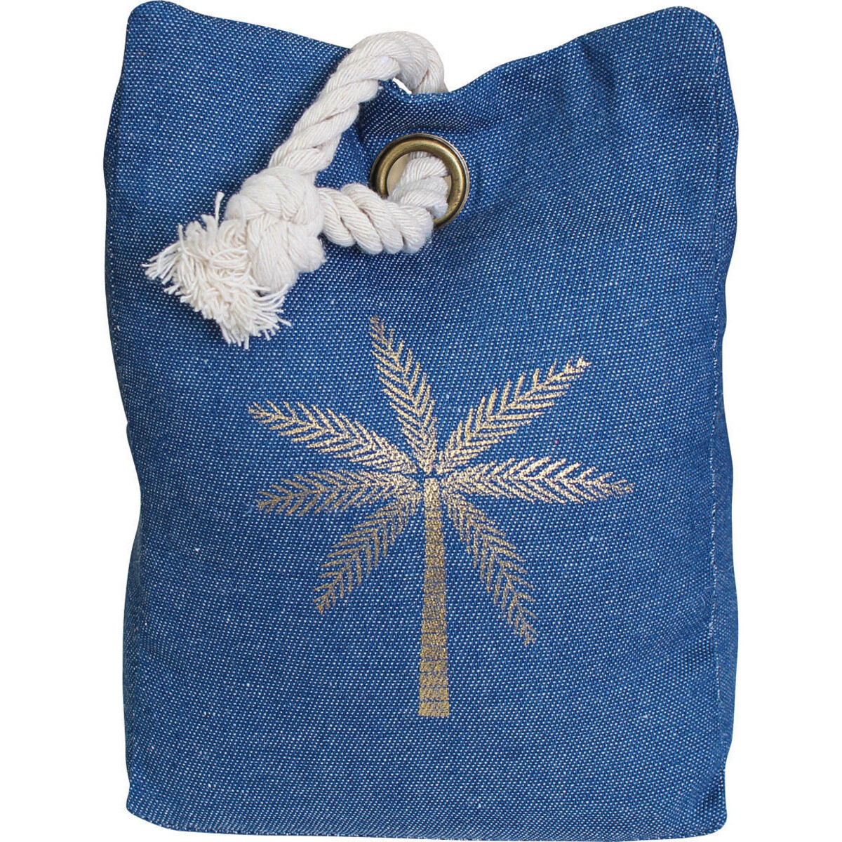 Made from sturdy blue fabric, its weight and size is designed with much perfection -this is the best means to ensure that your doorways are safe for kids and toddlers on windy days and when you need to carry heavy loads of grocery or a piece of furniture indoors, you could trust this blue doorstop to come to your aid. Made to impress as much with its colour and simple design, it has a print of palm tree in a golden beige colour, which with its simple yet impactful presence makes quite a statement, it is bound to eb a wonderful means to make even the dullest pf spaces liven up instantly. Beachy, marine in its nature, the doorstop is about 20 cm in height and 13 cm in width with a thickness of 10 cm. It is weighed down with a filling that keeps its grip on the floor. The rope loop in white contrasts vividly with the colour of the rest of the body. Make your doors safe with this simple inclusion from Lavida.