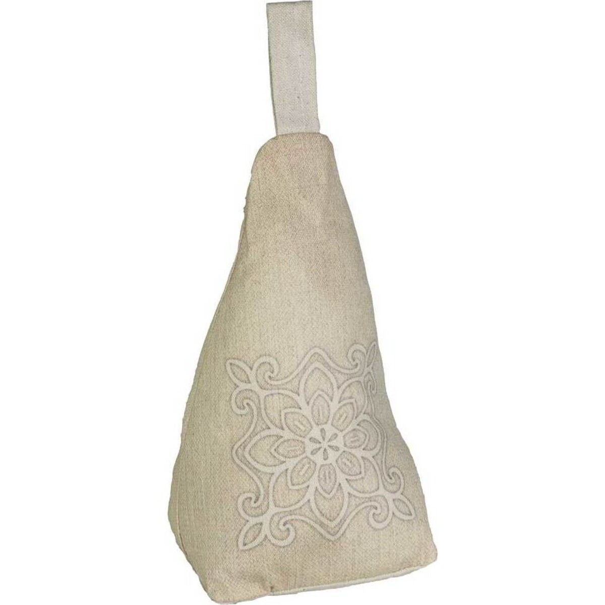 These doorstops are comprised of sand, twine, and cottonfelt so you know they're strong and they'll get the job done. A loop at the top allows for easy carrying from one spot to the next. As far as style, with a beige background and an ornate, scrolled design on the front, it will perfectly complement the rest of the room and your incredible sense of style. When not in use, they can do the work as bookends or simply sit on a shelf as decorative accents.