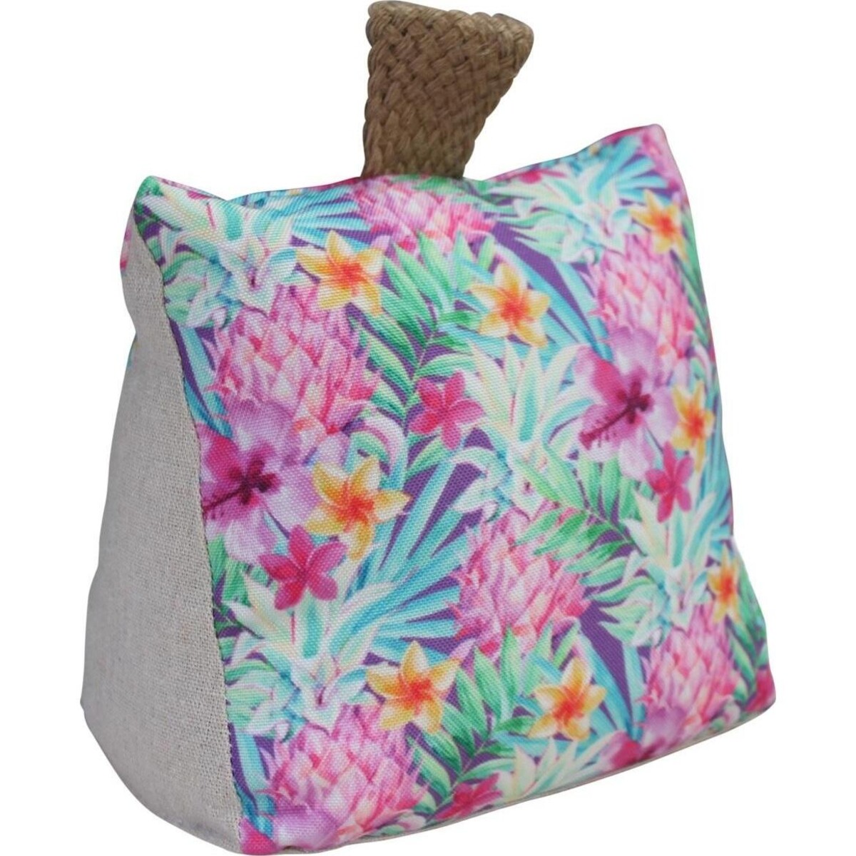 The canvas made structure is strong and resilient, not alone taking the weight of the stuffing, but its seams hold up well with the pressure that a heavy door exerts on it. Standing its ground, it holds on well to the floor and does not let go of its place despite the strongest of winds. Here is a door stop that will be loved by your not just for its floral pattern and ability to bring beauty at entryways but in its sturdy functionality as well. Made of fabric, it has been made compact at 18 cm length and height ad a width of 12 cm, and despite its diminutive stature, its performs its job to the fullest. A welcome burst of colour that it adds with its pink pine apple print is truly a wonderful addition to any home. It has a loop made of jute that allows easy carrying and shifting.