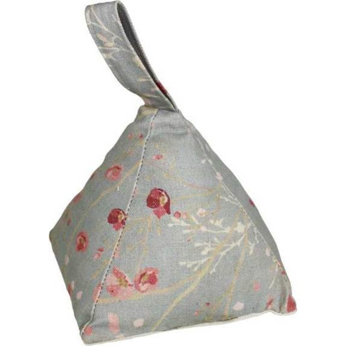Doorstop Pink Floral Pyramid has dimensions of 14x14x25 cm, bearing pink flowers and having the shape of a pyramid. The undertone of its cotton fabric is bluish in colour and this equipment - piece can prove to be helpful when patterns of weather change outside. Homeowners should expect to keep their families warm during cold times and fairly - cool when cold conditions ensue. As well, people working at offices and other establishments end up experiencing great delight due to the use of Doorstop Pink Floral Pyramid. In particular, facilities which offer health services would benefit greatly too, especially due to the sensitive nature of their activities.