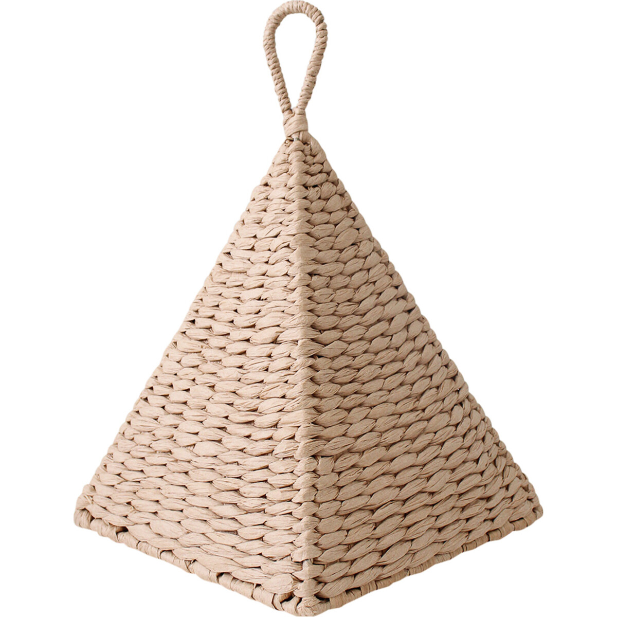 The distinguished pyramid shapeliness and 100% natural material composition are just some of the prominent features that make this Doorstop Pyramid Circle an eye-catcher! It is made through the carefully selected use of paper material which is beautifully woven into a pyramid shape whilst looking like one of those ancient Egyptian pyramids. It is made in a dimension which measures 30 centimetres in its length and 30 centimetres in width. For practical functionality, it comes with a short handle/loop located at the peak of the pyramid so as to enable your customer the opportunity of installing it on their door without stress.
