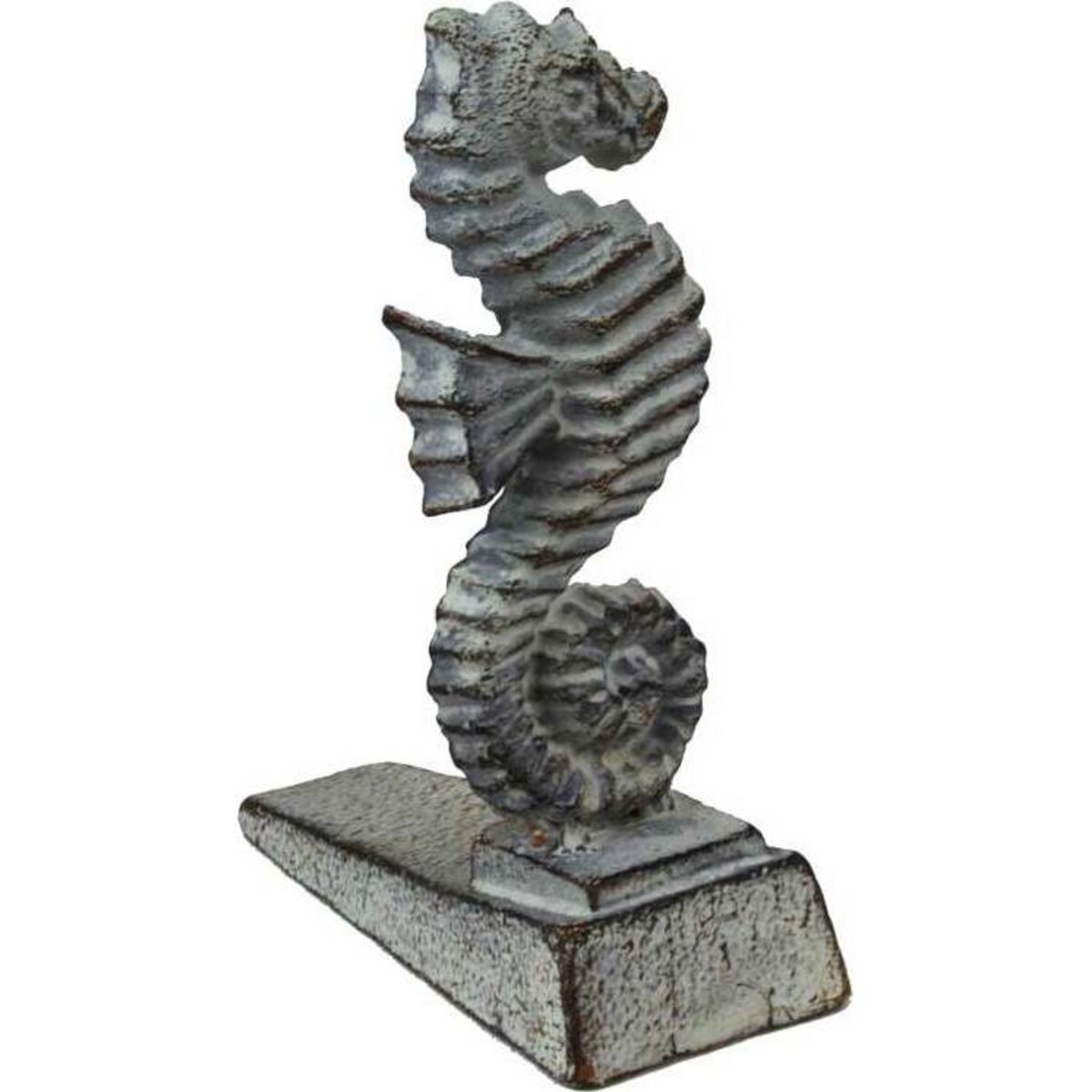 Almost a collectible in itself this cast iron look metal doorstop seems to hail from the 1930s when such doorstops were quite a rage. A definite buy for those who like to add a bit of charm to their decor with add on that are as utilitarian as they are great looking. This seahorse doorstop comes with a solid base that is tapering and will easily slide on the floor. Size most appropriate to make it effective even when a gust blows hard.