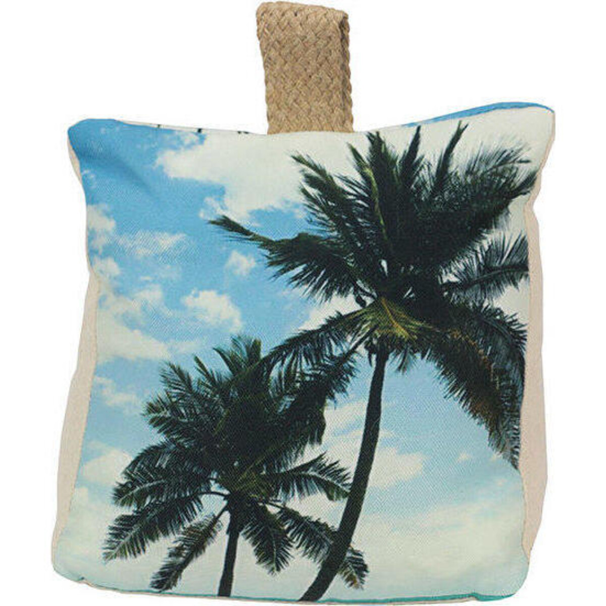 Homes have all kind of needs and while doors keep your home secure, keeping them ajar sometimes is as much a need, and helping you achieve this is this small little accessory. Made from polyester canvas, it has a sufficiently large size to take on the weight of any door. The square shaped door stop is about 18 cm in height and 18 cm in width with a pretty summer palm print adorning it. The pale blue skies and the green palms makes up much of the outer surface making it look like a tiny little spot of attraction sitting there on the floor. If you are particularly worried about little children not getting their fingers caught in the door jamb or in making your homes a little airier by leaving the door slightly ajar, here is the perfect little genie to help you achieve that with ease. Easy to lift and place where you need it with the help of the burlap handle, it is a well - structured home accent that does its job with ease.