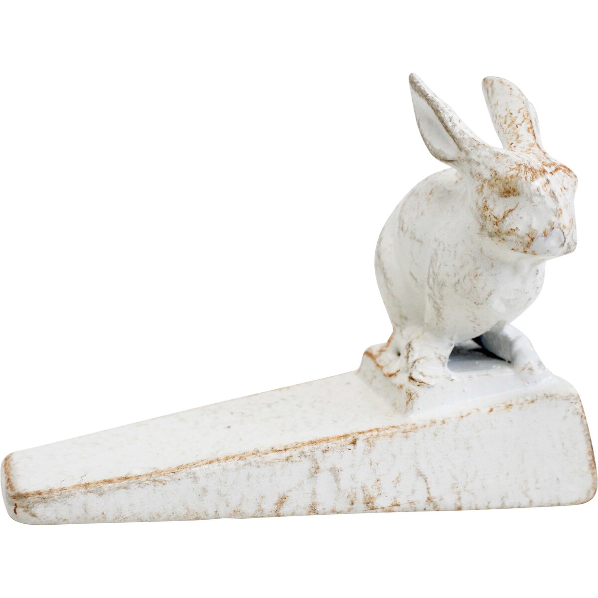 The most important function of doorstops really is to ensure that untoward accidents do not occur when the wind plays up and brings the door crashing down. Also - at night when the door have to be slightly ajar so that you could hear the baby crying, it simply keeps that crack in the door - for all such purposes trust this tiny little doorstop that will not just perform its duty to its best but will play its role in making the space more shabby chic. The vintage touch rusty old doorstop wedges a great hold over the heaviest of doors and make sit stay in place despite the roughest of winds playing into your interiors. The white colour albeit dusty and rusty adds as touch of vintage charm. The tiny little rabbit crouching there makes the doorstop look more than the ordinary functional article that simply does it job elevating its appearance to an add on in the décor. About 9 cm in height and 12 cm in length - its pert little size is effective enough to keep the door sturdily ajar.