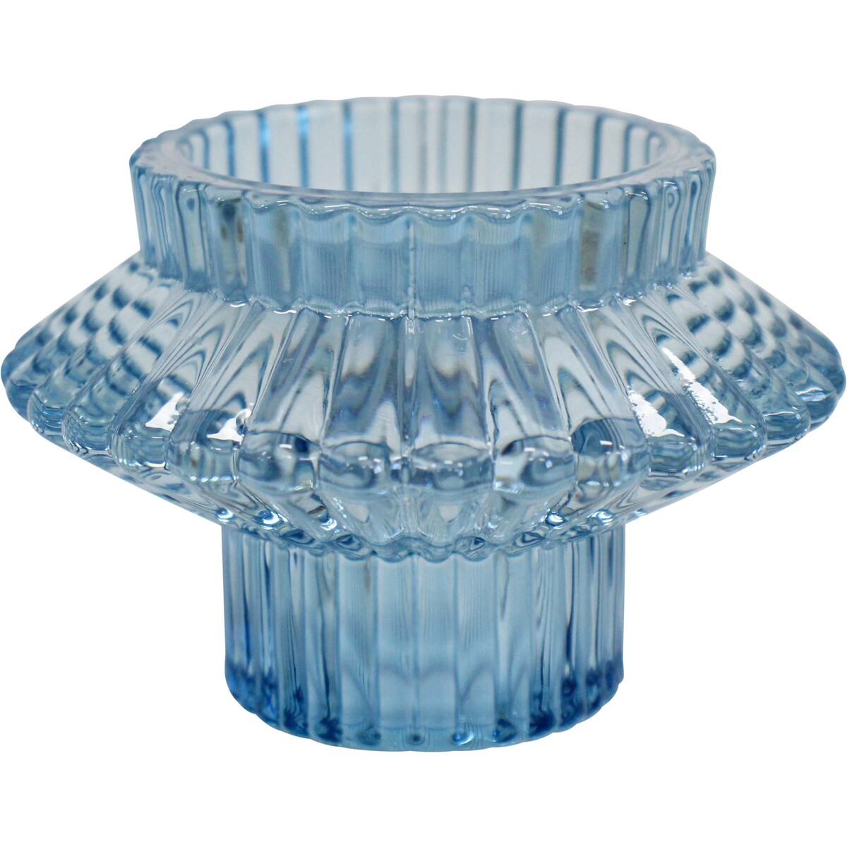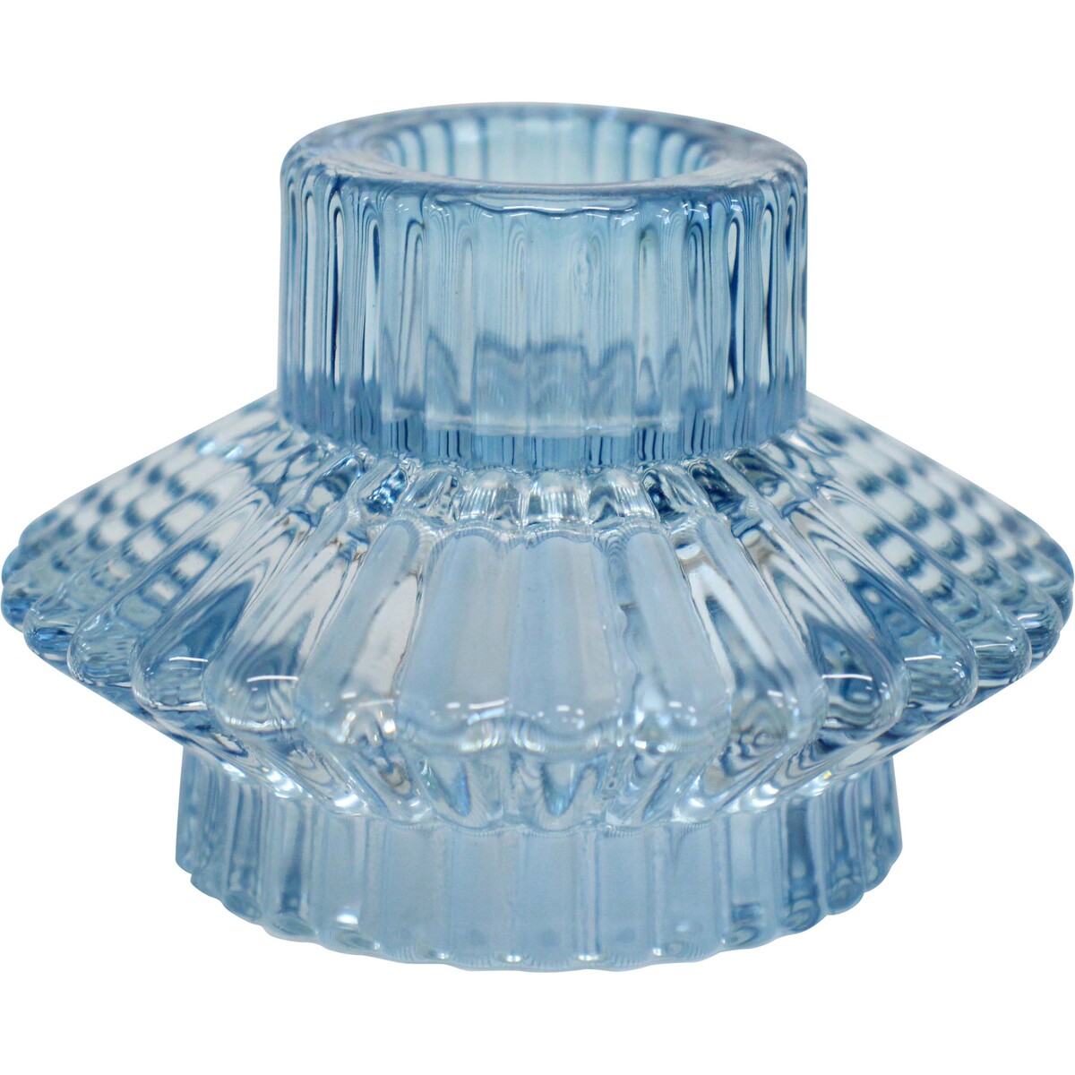 Introducing the enchanting Double Sided Candle Holder Sky, a versatile and stylish piece that promises to elevate the atmosphere of any room. Crafted from the finest glass, this candle holder boasts a refreshing sky blue hue that imbues a sense of calm and tranquility akin to a serene sky. Its compact dimensions of 8x8x5.5 cm ensure it is an exquisite accent piece that fits effortlessly on any mantelpiece, desk, or shelf, adding a touch of elegance without demanding much space.