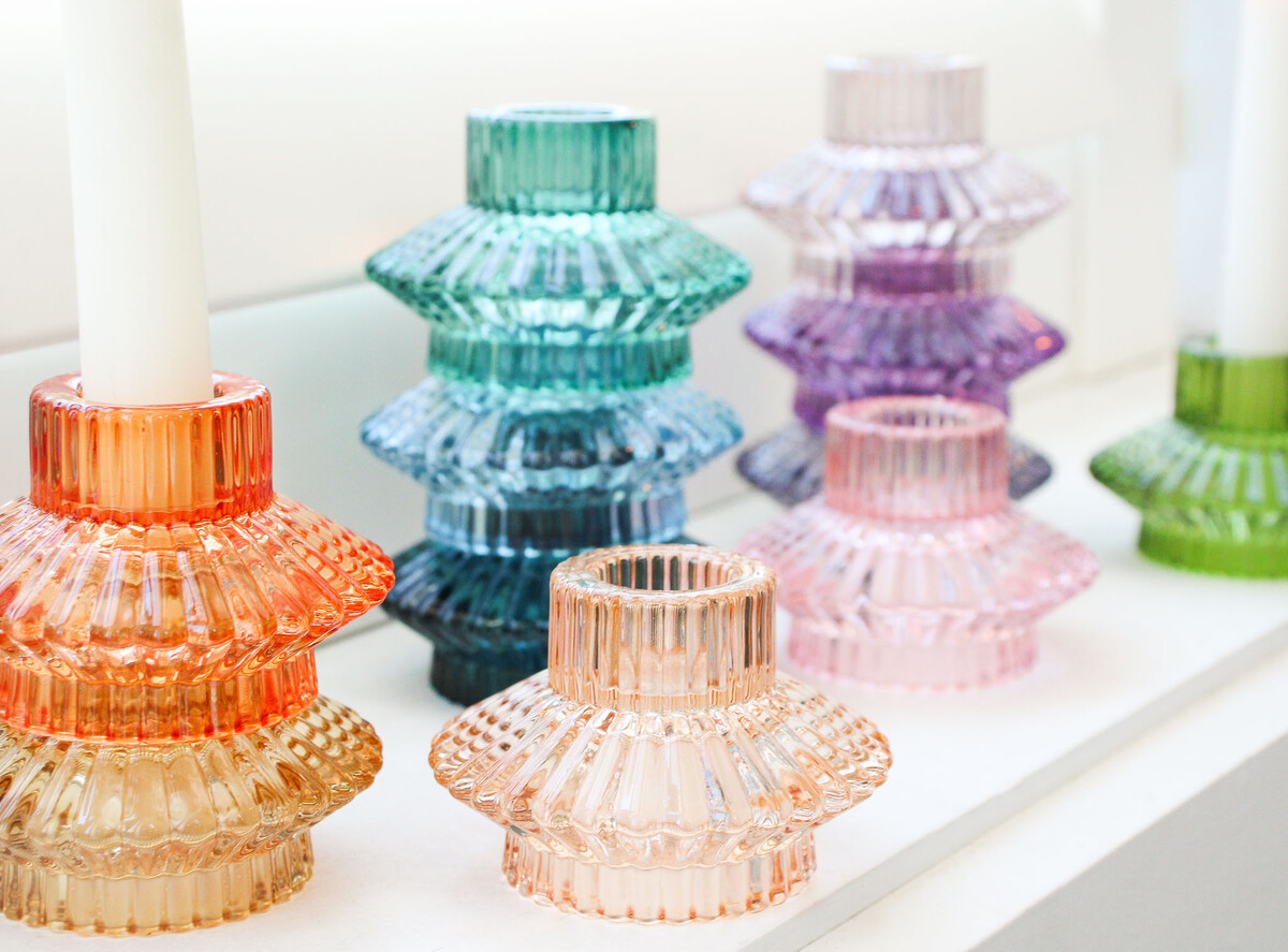 This item is designed to be stacked so many colour combinations can be achieved. Depending on the way the candle holder is used it can hold a tealigh or a tapered candle. This product is packaged in foam encasing.
