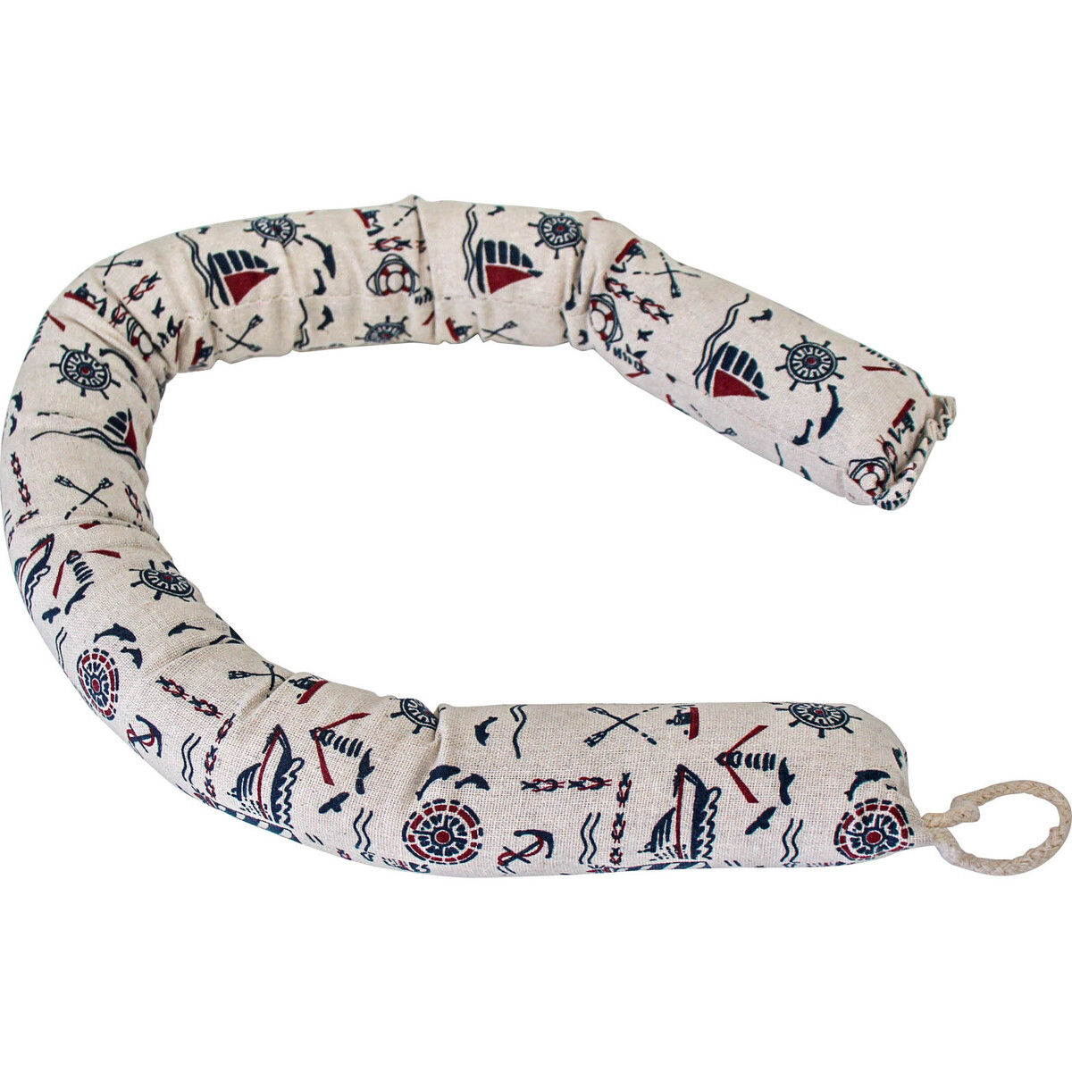 Imagine a cozy, seaside cottage ambiance in your living space, enhanced by this unique draught stopper that keeps the comfort in and the cold breezes out. Its eclectic design features an array of classic sailing icons, which can effortlessly blend with various interior styles, from rustic to contemporary. The 'Ships Ahoy' theme of this draught stopper is poised to capture the hearts of nautical enthusiasts and those looking to infuse their homes with a hint of adventure on the high seas.
