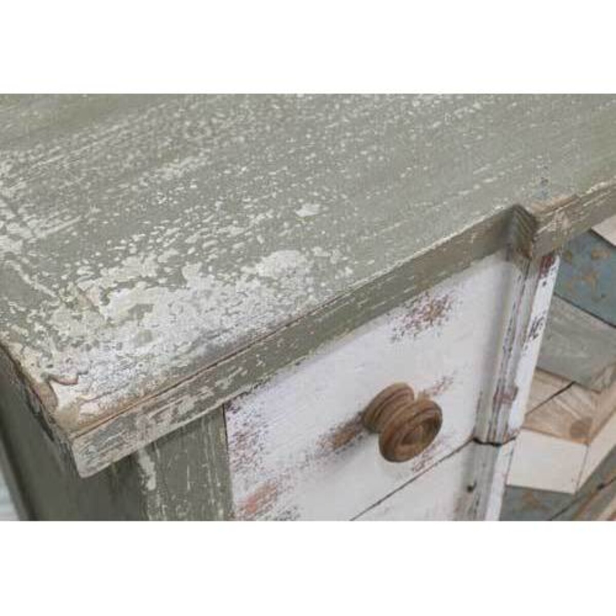 These beautiful cabinets, which are comprised of fir and MDF, are painted grey with drawers that have white faces and a colourful chevron pattern vertically down the centre. Little drawer pulls make for easy opening as well as a touch of style. The cabinets are lifted off the ground by four tall legs so they're sturdy and allow for extra storage underneath should you so desire. There are four drawers which creates plenty of room for storing a plethora of items ranging from clothes and toys to papers and jewellery.