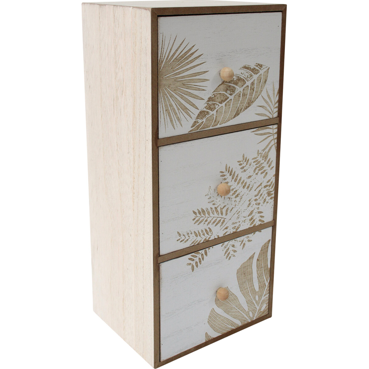 The Drawers 3 Tall Palm is highly functional piece of furniture that was purposely design in a vertically inclined dimension which is especially suitable for official settings like offices, schools, hotels, financial institutions, and other such business and government centres where there is always a need for safe documentation and storage of files and other such important things. Standing at 3.5 centimetres in height, it houses three demarcated drawers which are ornately designed with the paintings of various species of palm leaves. It is also usable in homes and contributes to the overall decorative atmosphere.
