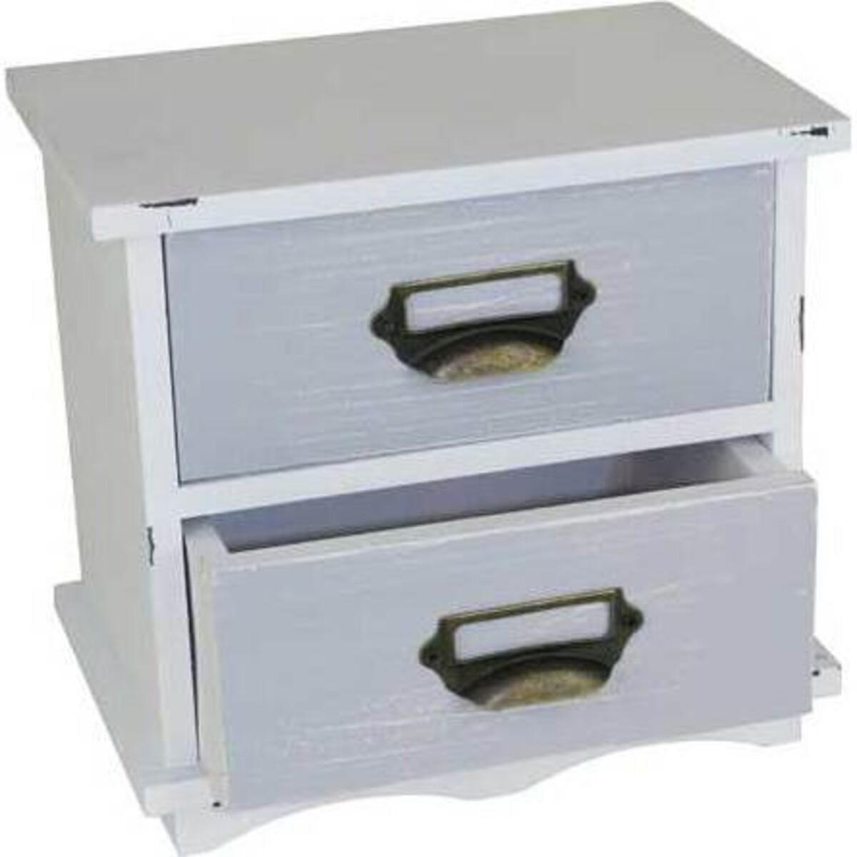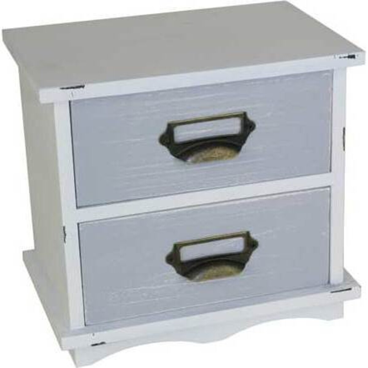 A simple and solid design makes this bureau a hugely user friendly and versatile piece of furniture that could be placed in nay room of the house. It has a height of 21 cm and the length of 23 cm and width of 15 cm, making it really neat and very natty. Could be used as a bedside table. The drawer capacity seems deep and each comes with solidly fitted antique brass pull away that will help slide the drawers out smoothly. The table sits solidly and its legs will allow cleaning of the base. The rubbed paint effect and the colours combined in most muted of shades gives this table a pure and pristine feel - very fresh, summery and cottage like.