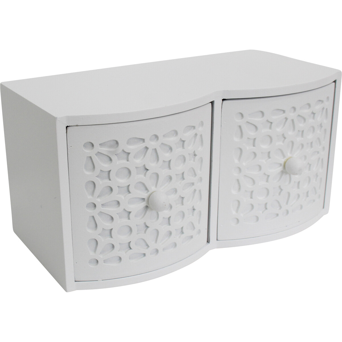 Our Drawers Ornate 2 White is a beautiful little storage piece that seems to be a hit with customers who want something functional but still aesthetically pleasing. The crisp white finish and pretty ornate design on the drawers really do make it stand out, especially for those who love a touch of classic charm. At 22.5x11.5x11cm, it fits easily onto desks or dressing tables, and being made from MDF means it's sturdy enough to handle daily use - perfect for retailers looking to offer stylish yet practical organisation solutions.