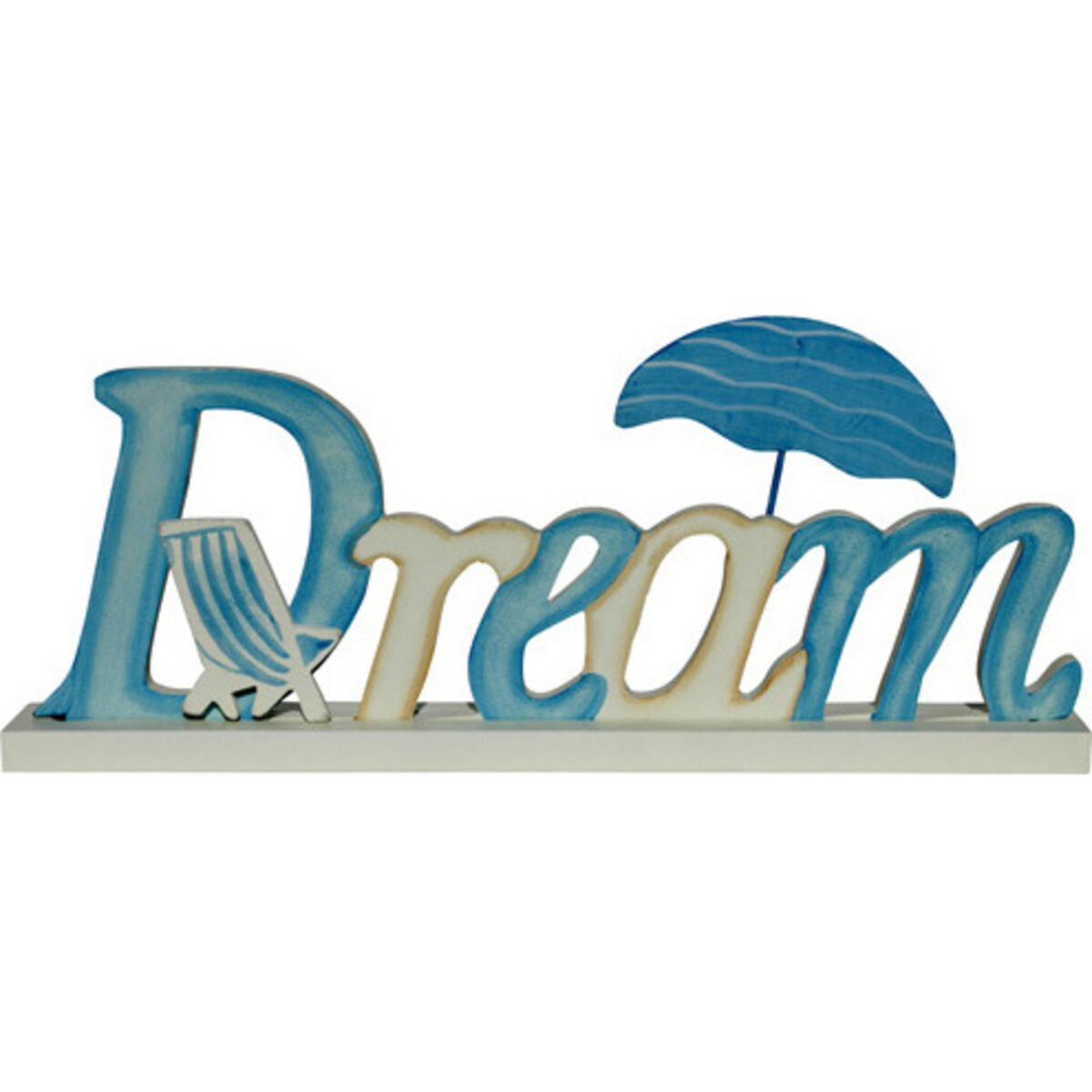 The Dream Sign is a beautiful tabletop decoration made of sculpted ceramic. Each of the letters that spell the word 'DREAM' is carefully shaped to perfection. And on top of the alphabet letter A is an attached umbrella which is also made of sculpted ceramic. There is also a sculpted sunbathing bed positioned with the alphabet letter D.