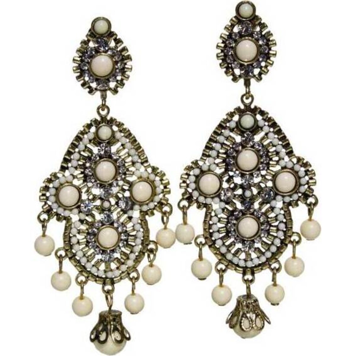 Set on a silver base, these earrings feature a collection of large and small beads embellished on the pendants as well as several other beads hanging from the bottom. Clear rhinestones add an extra touch of shimmer and shine that come together to create the perfect works of art that you can wear with almost any outfit. Thanks to their colouring, the earrings will complement everything from a little black dress to a more casual look. You'll wonder how you did without them in your collection for so long.