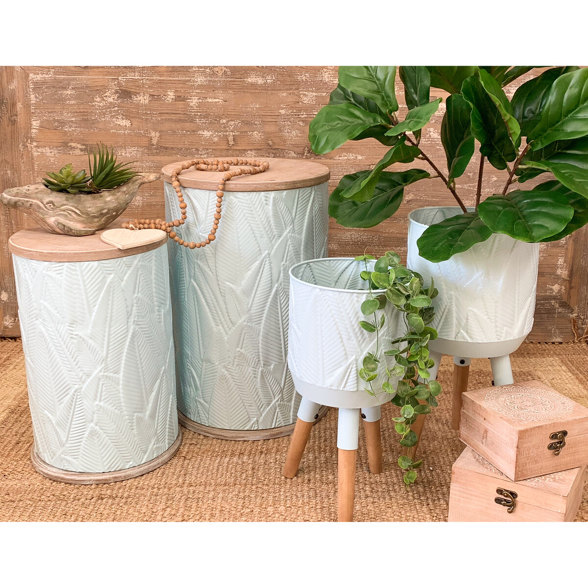 Drum Table Leaf Soft Blue / Set 2